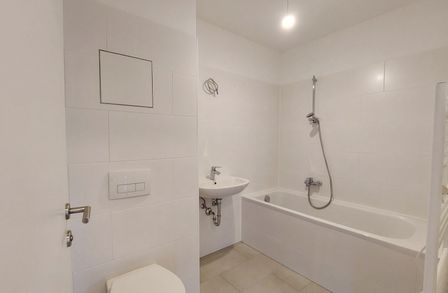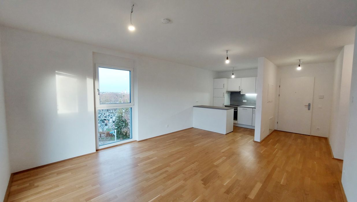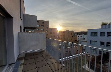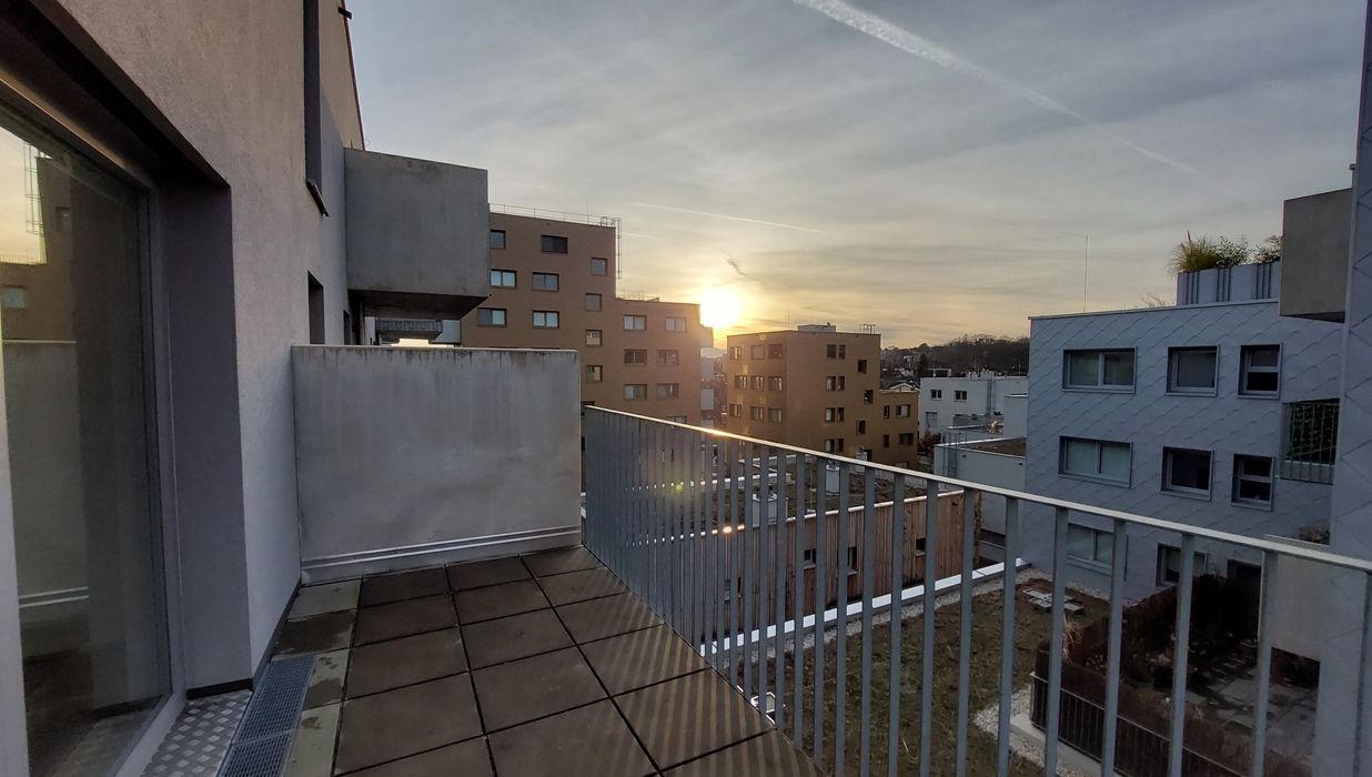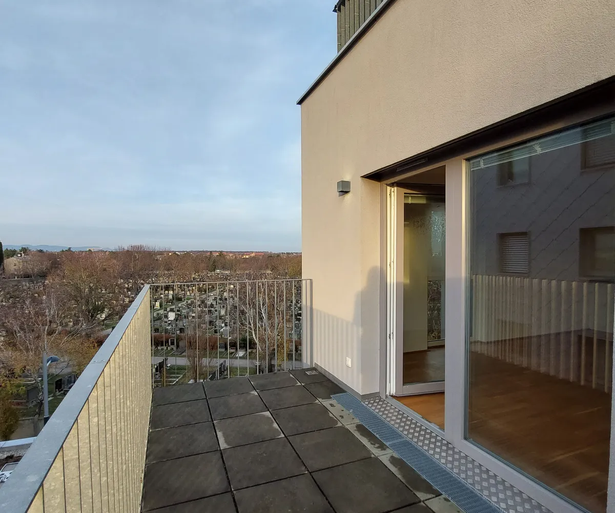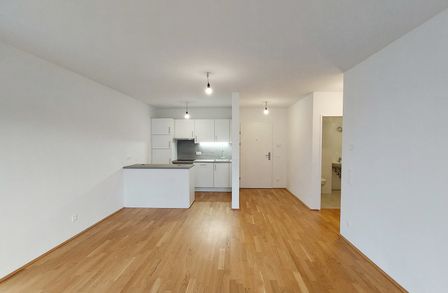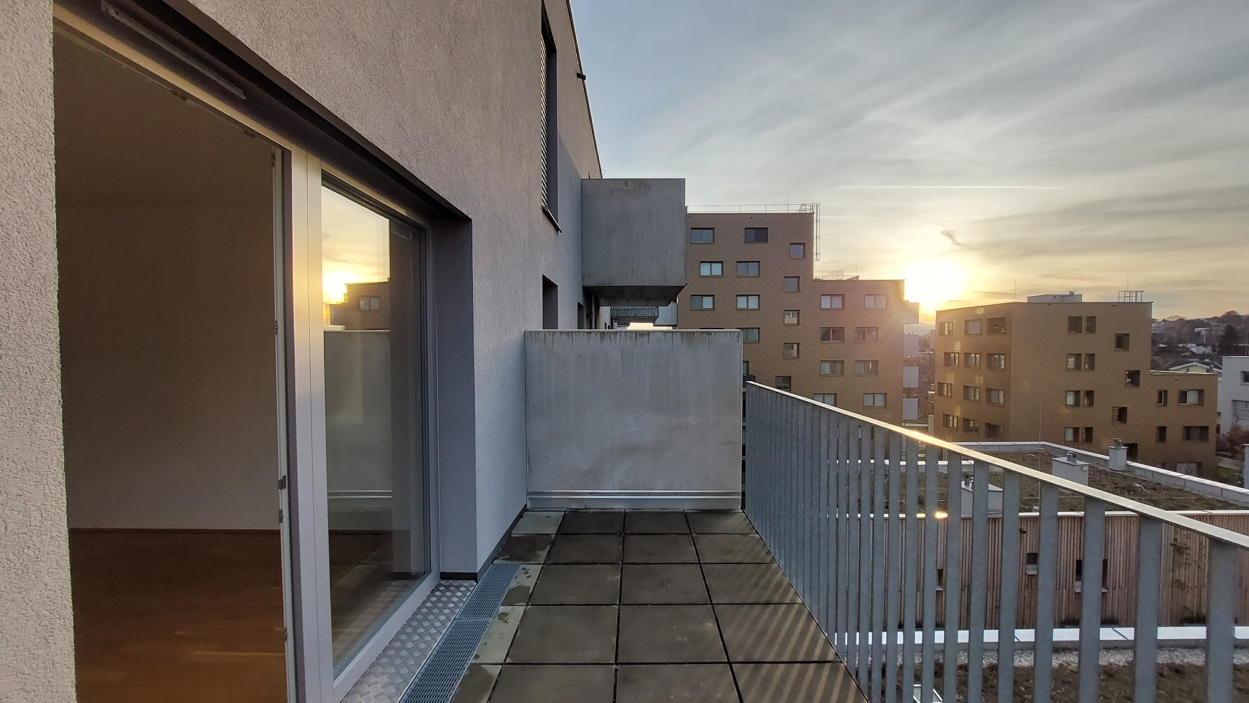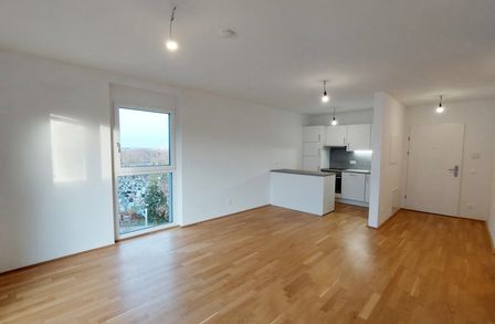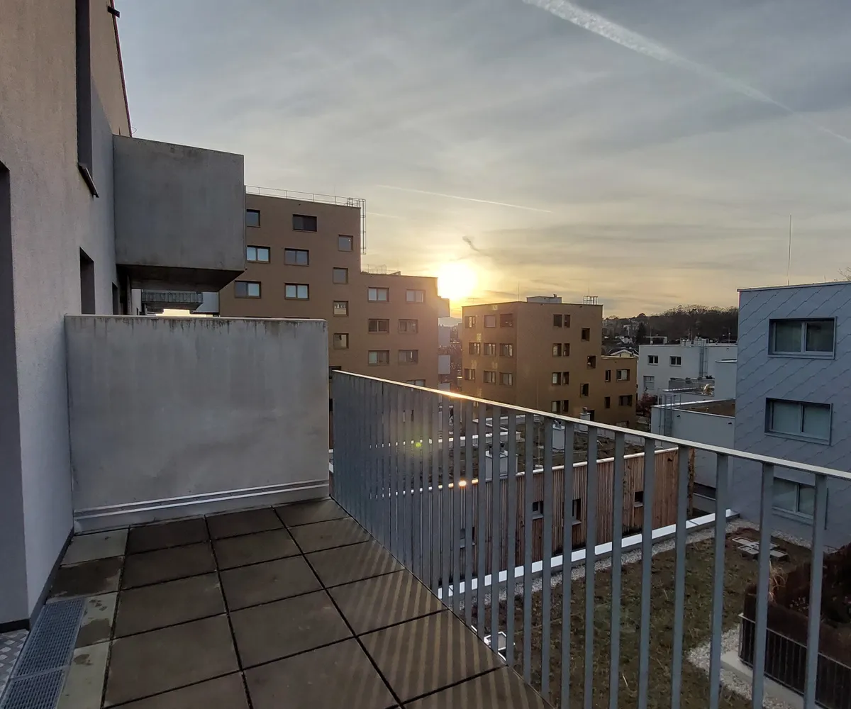 Die Wohnung selbst befindet sich im 5. Obergeschoss und verfügt über einen hellen Wohnraum mit Küche, ein Schlafzimmer, ein Badezimmer mit Dusche und Badewanne, ein Abstellraum inkl. Waschmaschinenanschluss, sowie einen Vorraum. Der westseitige Balkon lädt zum gemütlichen Verweilen ein.