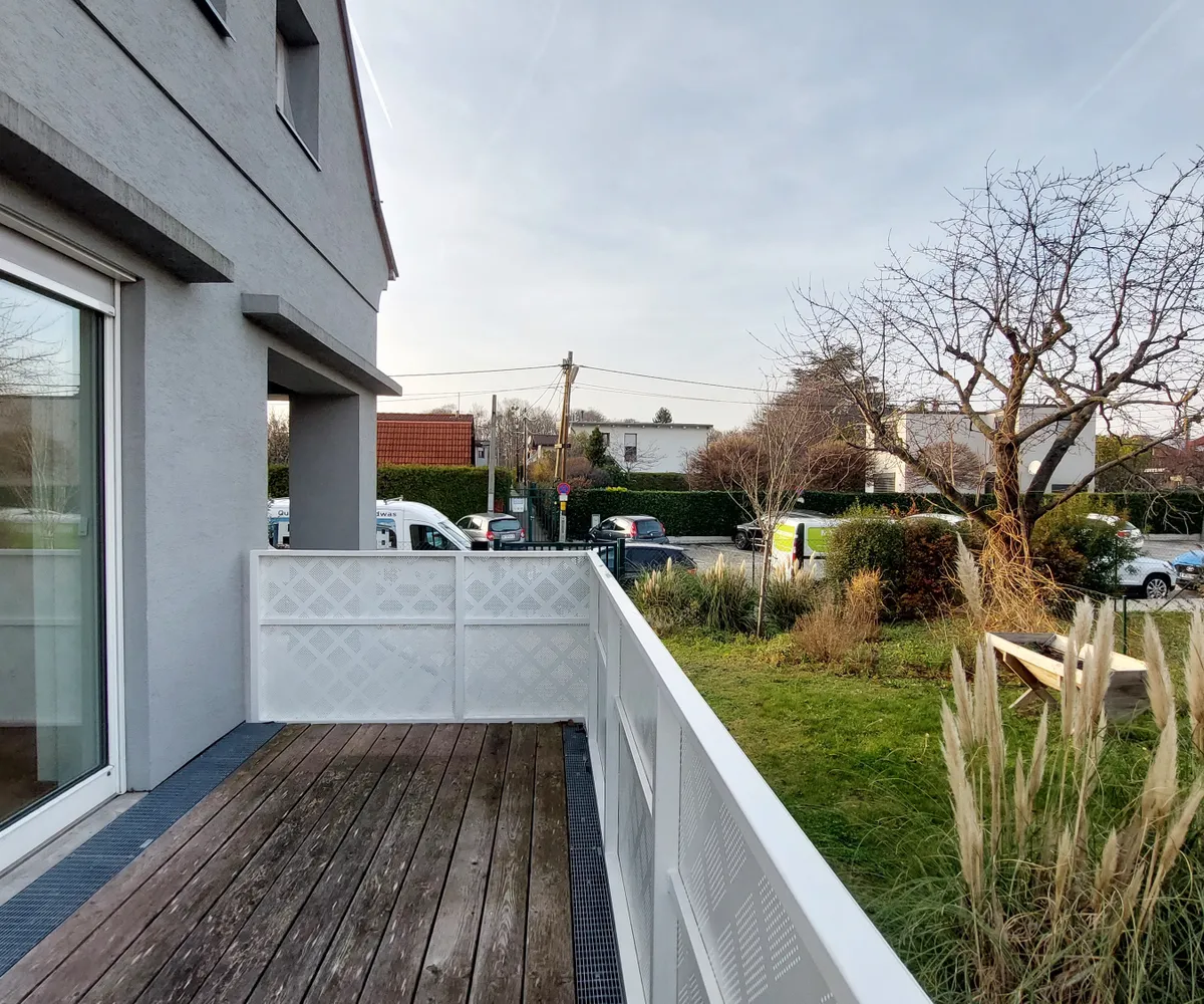 Im Erdgeschoß erwartet Sie ein einladender Eingangsbereich, ein großzügiger Wohnbereich mit Küchenzeile, Speis und Zugang zum Balkon, außerdem ein separates WC.