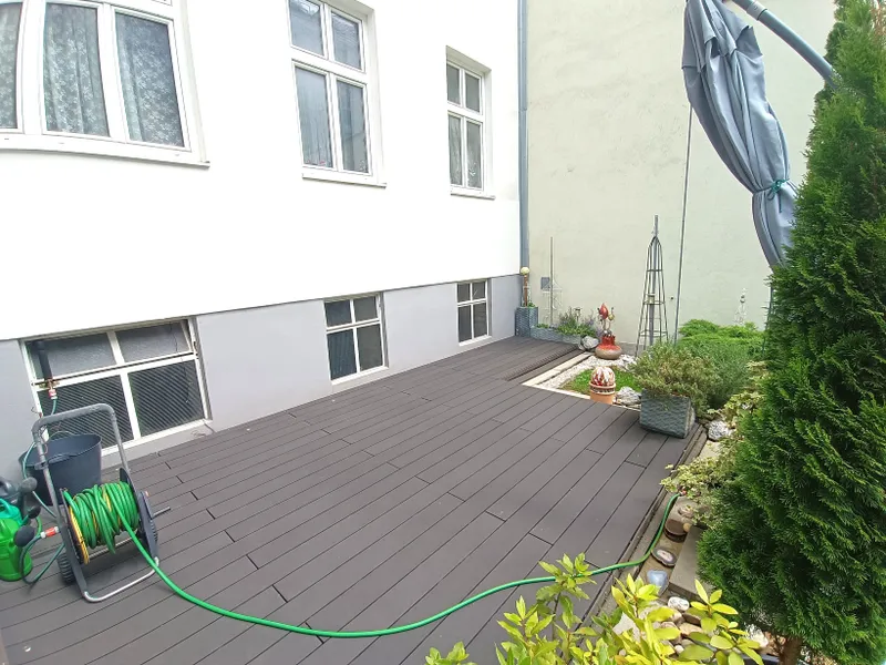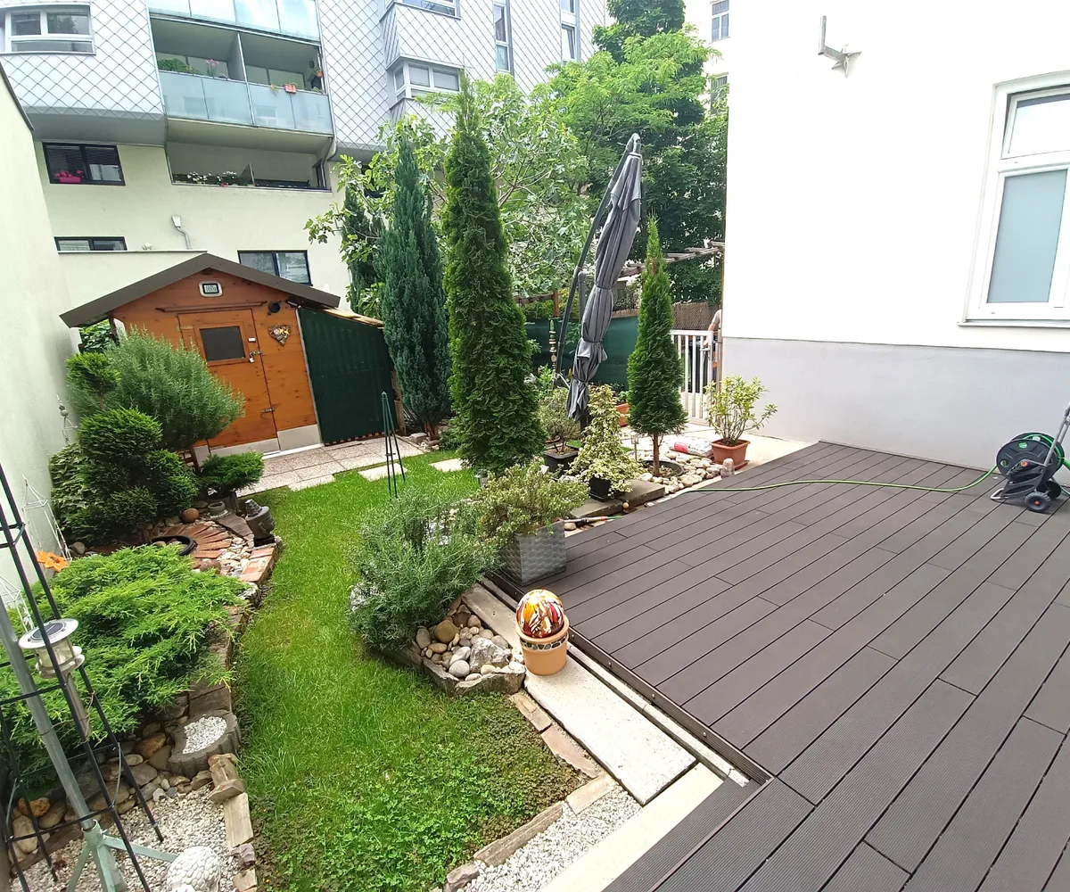 Highlight dieser Wohnung ist der Garten mit Terrasse. Hier erwartet Sie auf 70 m2 ein wahres Juwel. Die Bepflanzung und das durchdachte Gestaltungskonzept sorgen für ein wahres Paradies. Auf der Terrassenfläche finden Sie ausreichend Platz für ein Sitzgarnitur und natürlich hätte auch der Griller Platz. Ein praktischer Geräteschuppen, sowie Wasseranschluss sind ebenfalls vorhanden.