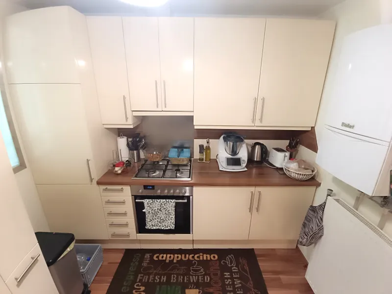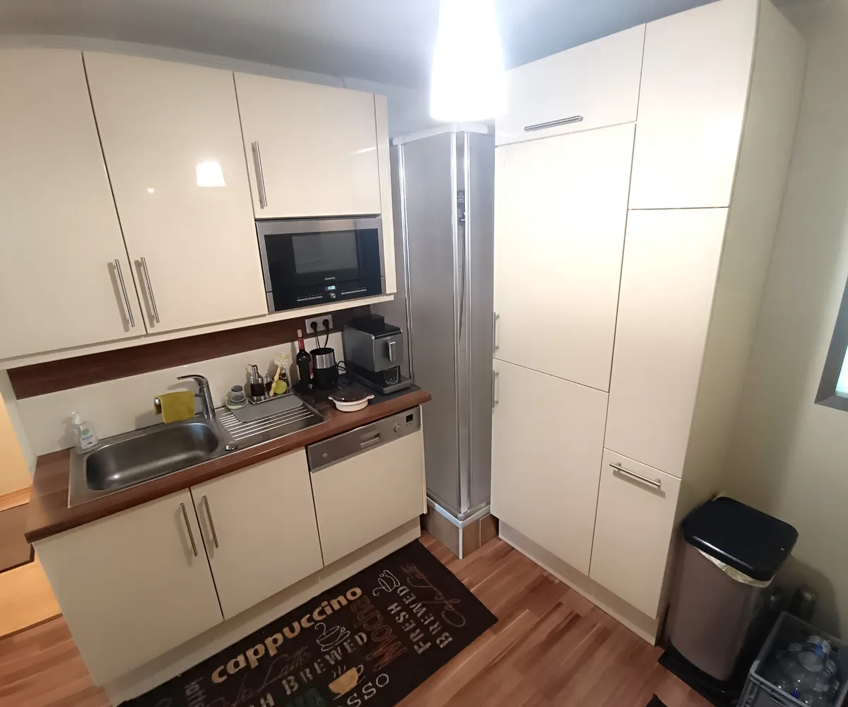 Die Küche ist voll ausgestattet und bietet alles was Sie für das entspannte Kochen benötigen. Vom Geschirrspüler, Dunstabzug, Ceran-Kochfeld, moderner E-Herd, sowie verbauter Mikrowelle und ein großzügiger Kühlschrank mit separatem Gefrierfach ist alles vorhanden.