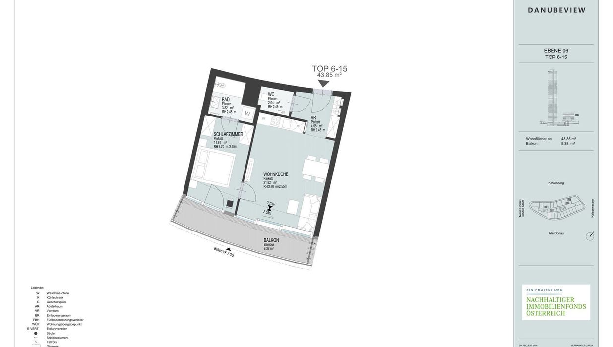 Die Lage an der Neuen Donau vereint Natur, Urbanität und internationale Atmosphäre.