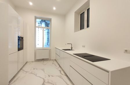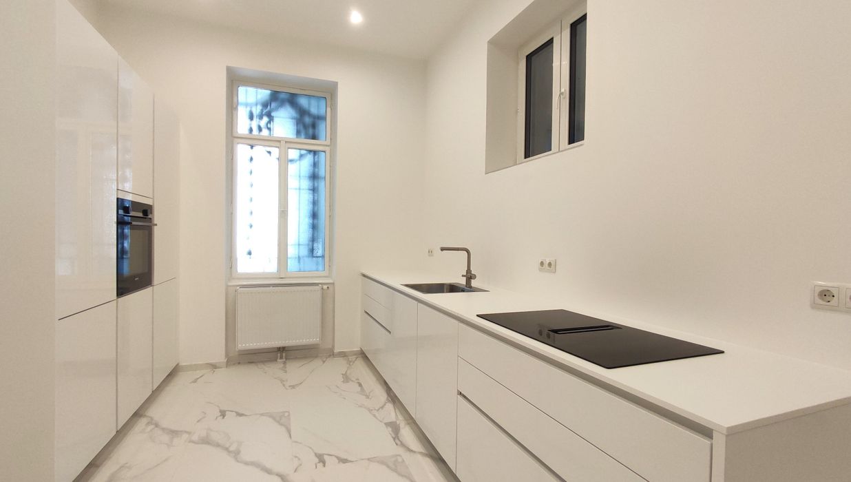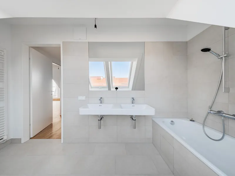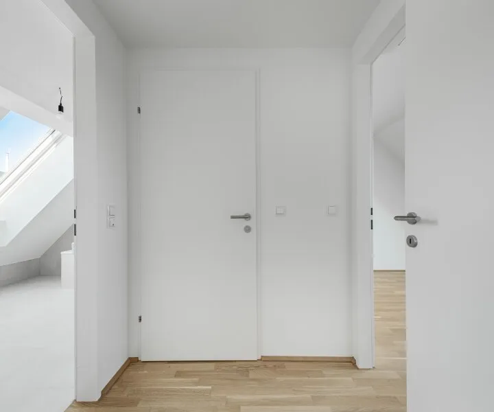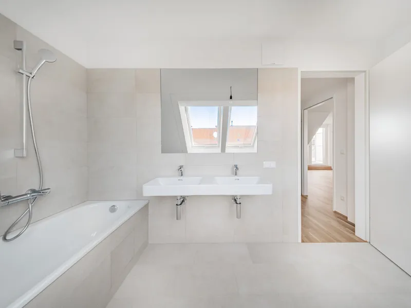 Vom Vorraum aus erreichen Sie sämtliche Zimmer der Wohnung und zusätzlich stehen zwei Abstellräume zur Verfügung. Das Badezimmer ist eine wahre Ruheoase und die Badewanne lädt dazu ein den Tag entspannt ausklingen zu lassen. Ein Handtuchheizkörper steht ebenso zur Verfügung. Die Küche bietet eine Fläche von rund 8,46 m² und auch hier bleiben keine Wünsche offen. Der moderne Küchenverbau in weiß und das Kochfeld mit integrierter Abluft sind ein optisches Highlight und der Stauraum bietet ausreichend Platz für Ihre Kochutensilien.