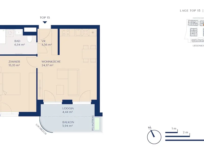 Der nahegelegene Autobus bringt Sie in nur 13 Minuten nach Hietzing, und der Schnellbahn-Bahnhof Atzgersdorf ist lediglich eine kurze Spazierstrecke oder eine zweiminütige Busfahrt entfernt. Von dort aus erreichen Sie die zentralen Verkehrsknotenpunkte Wien Meidling und Wien Hauptbahnhof in nur sechs bzw. zwölf Minuten. Diese gute Anbindung macht das Projekt zur idealen Basis für ein urbanes Leben im Grünen – auch ohne eigenem Auto!