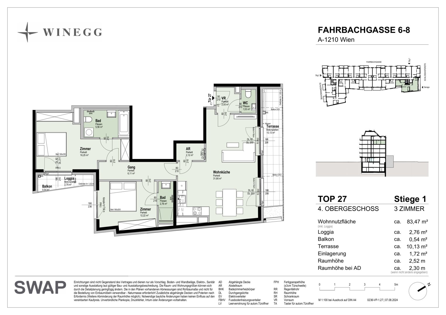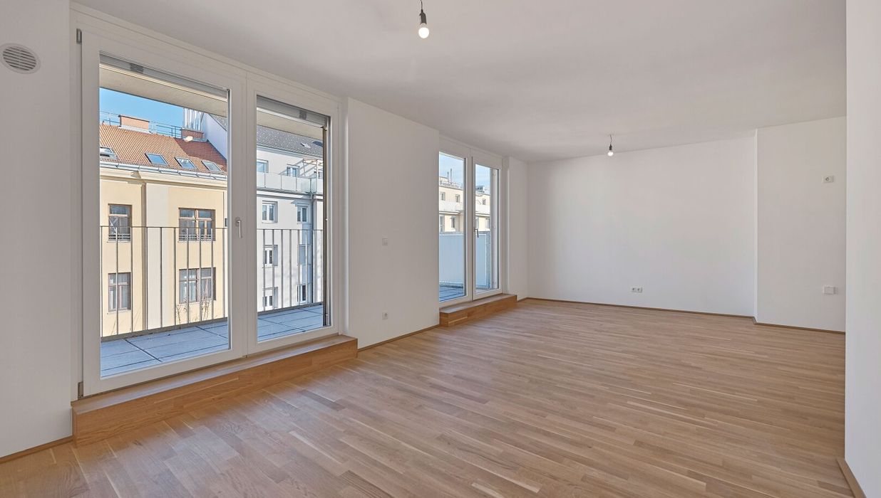 Die 3-Zimmer-Wohnung mit ca. 81 m² Wohnnutzfläche sowie einer großzügigen Terrasse und einer Loggia befindet sich im 4. Obergeschoss.