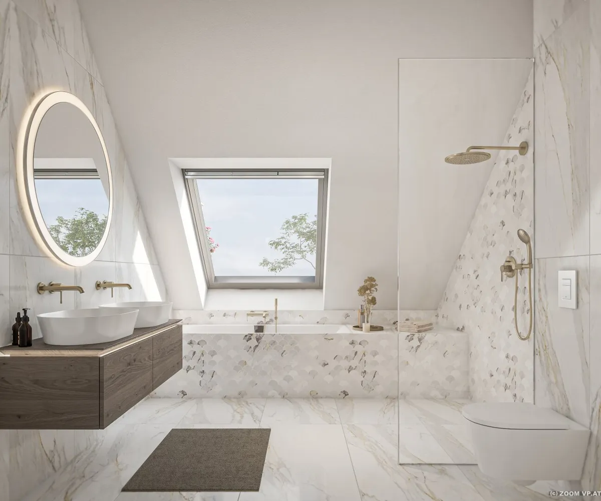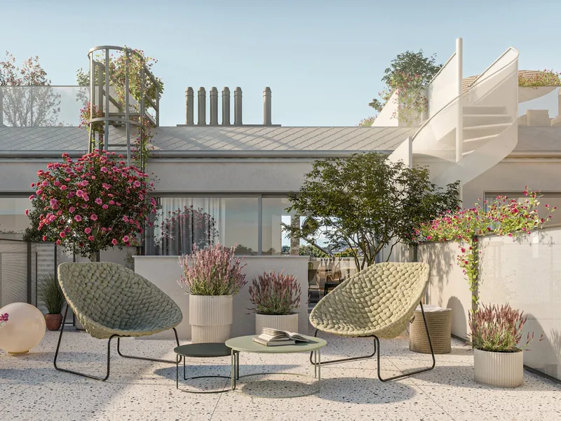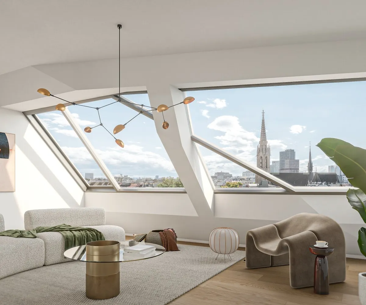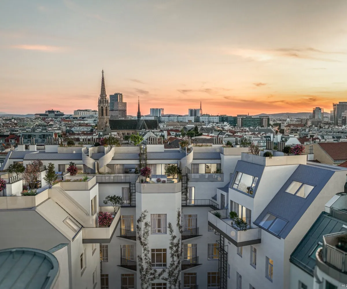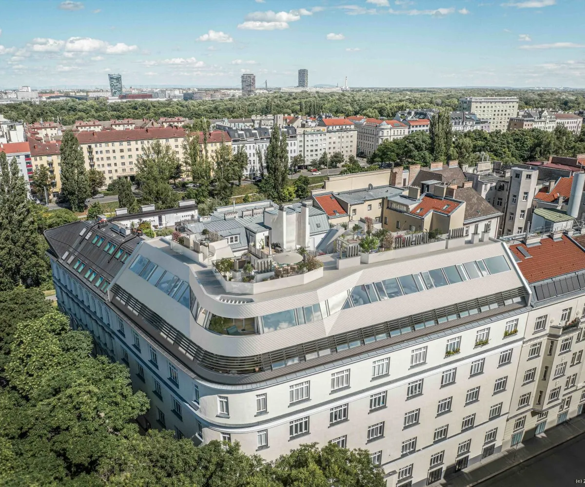 Im neu ausgebauten Dachgeschoss eines sorgfältig revitalisierten Altbaus entstehen 9 exklusive Wohnungen mit 2 bis 5 Zimmern. Jede Wohnung verfügt über mindestens eine private Freifläche, ob Loggia, Balkon oder Terrasse.