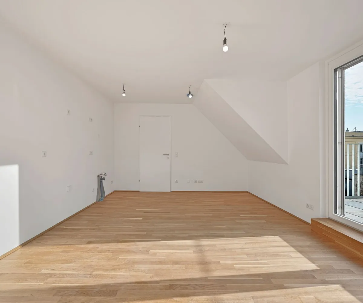 Die 3-Zimmer-Wohnung mit ca. 60 m² Wohnnutzfläche sowie einem Balkon befindet sich im 1. Dachgeschoss.