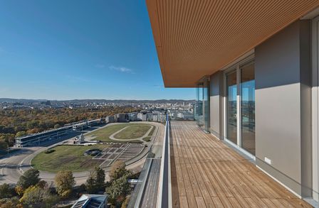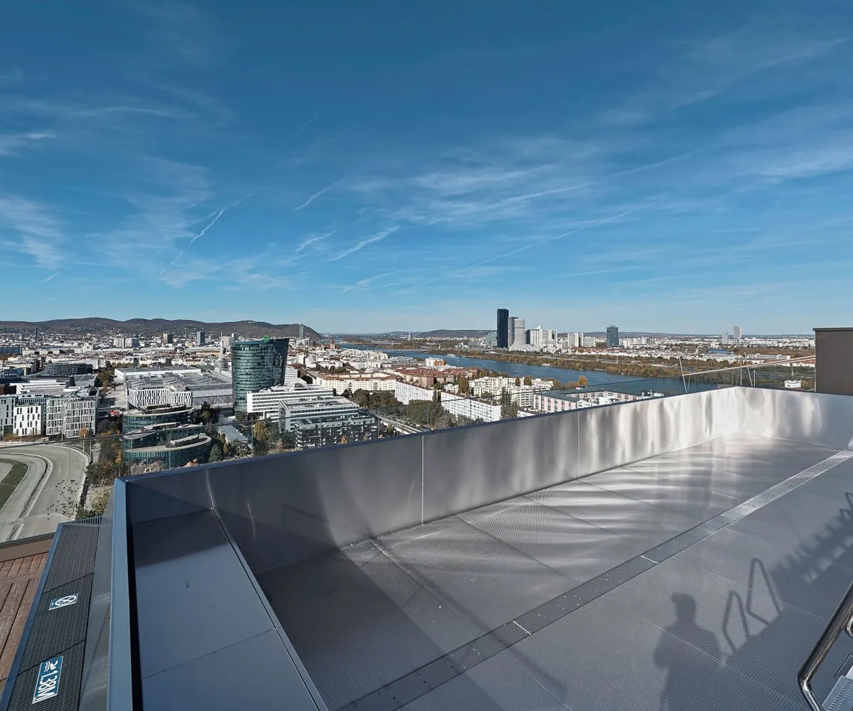 Der heuer fertiggestellte Wohntower mit 28 Etagen plus 3 Untergeschoßen bietet 340 Wohneinheiten sowie zahlreiche Extras wie Concierge-Service und eine Wellness- und Freizeitoase am Dach im 27. Stockwerk!