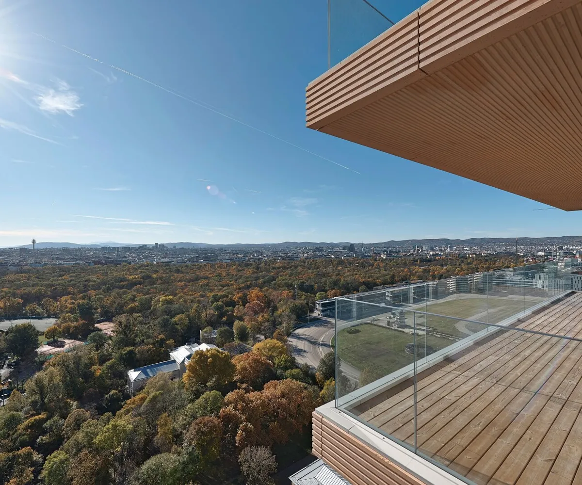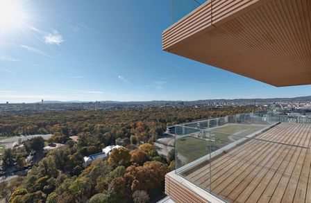 Der heuer fertiggestellte Wohntower mit 28 Etagen plus 3 Untergeschoßen bietet 340 Wohneinheiten sowie zahlreiche Extras wie Concierge-Service und eine Wellness- und Freizeitoase am Dach im 27. Stockwerk!