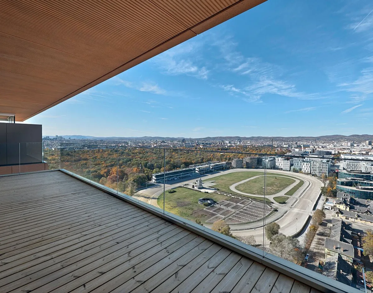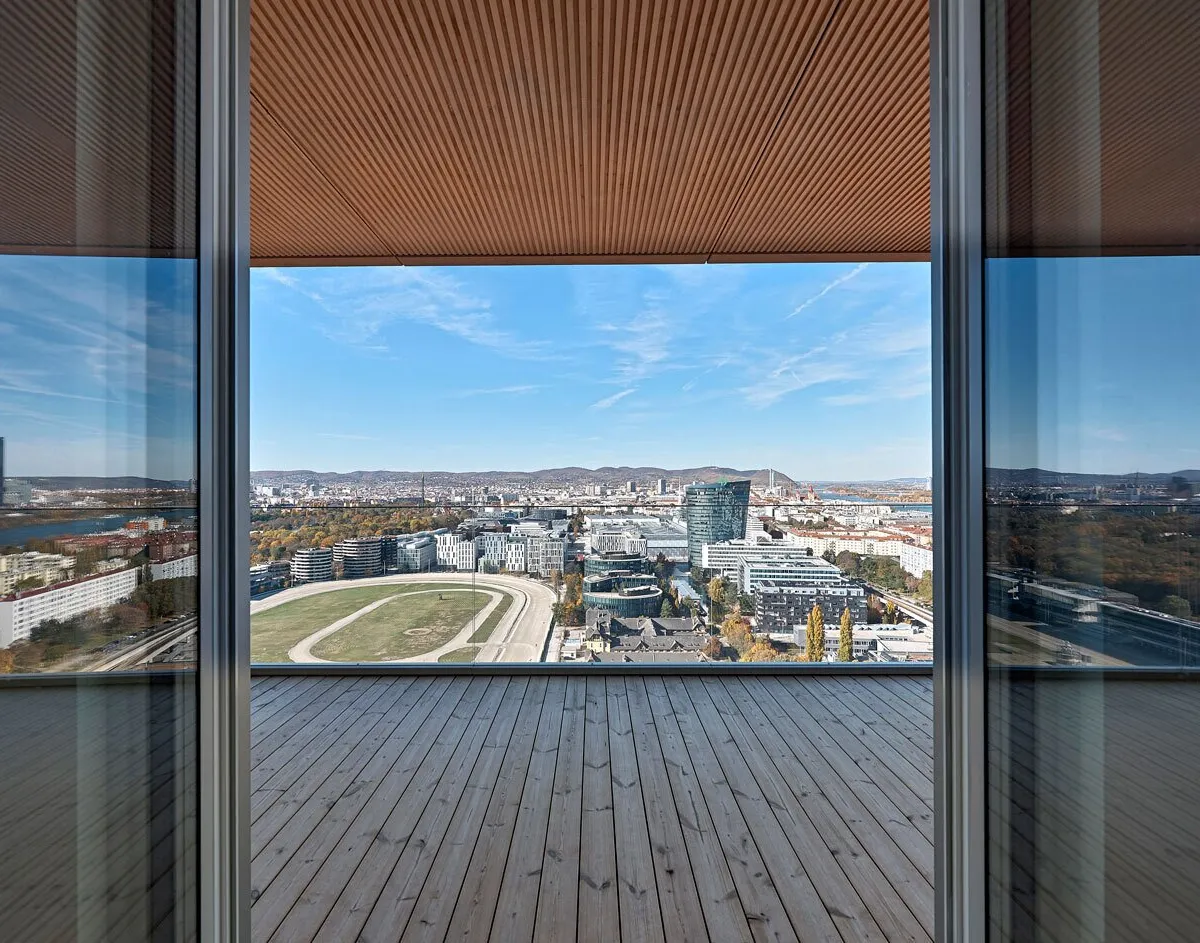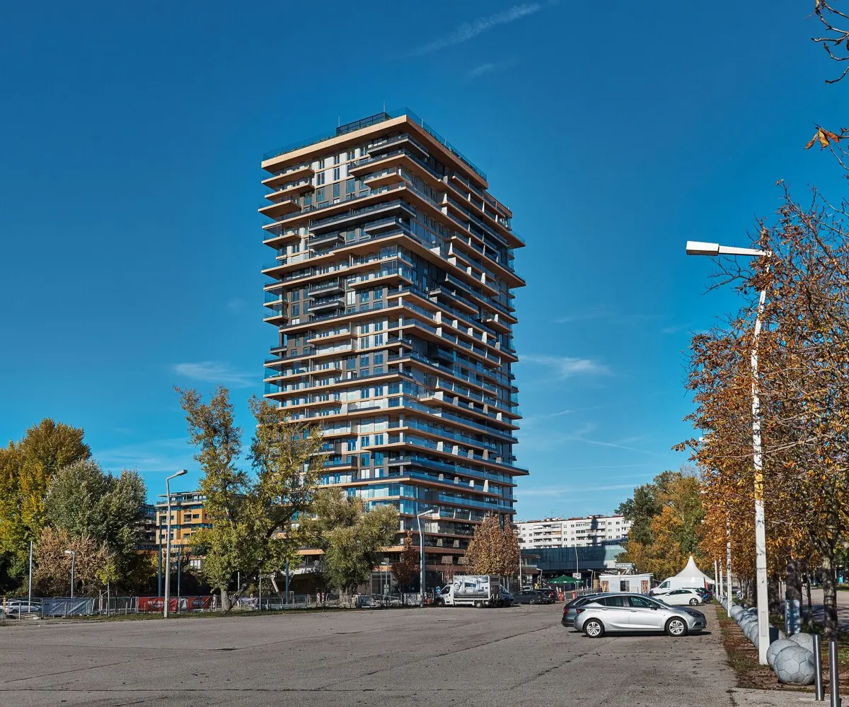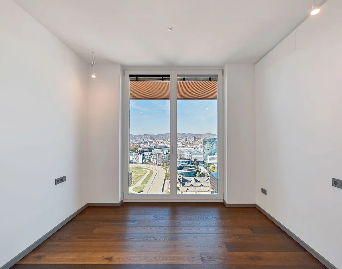 Der heuer fertiggestellte Wohntower mit 28 Etagen plus 3 Untergeschoßen bietet 340 Wohneinheiten sowie zahlreiche Extras wie Concierge-Service und eine Wellness- und Freizeitoase am Dach im 27. Stockwerk!