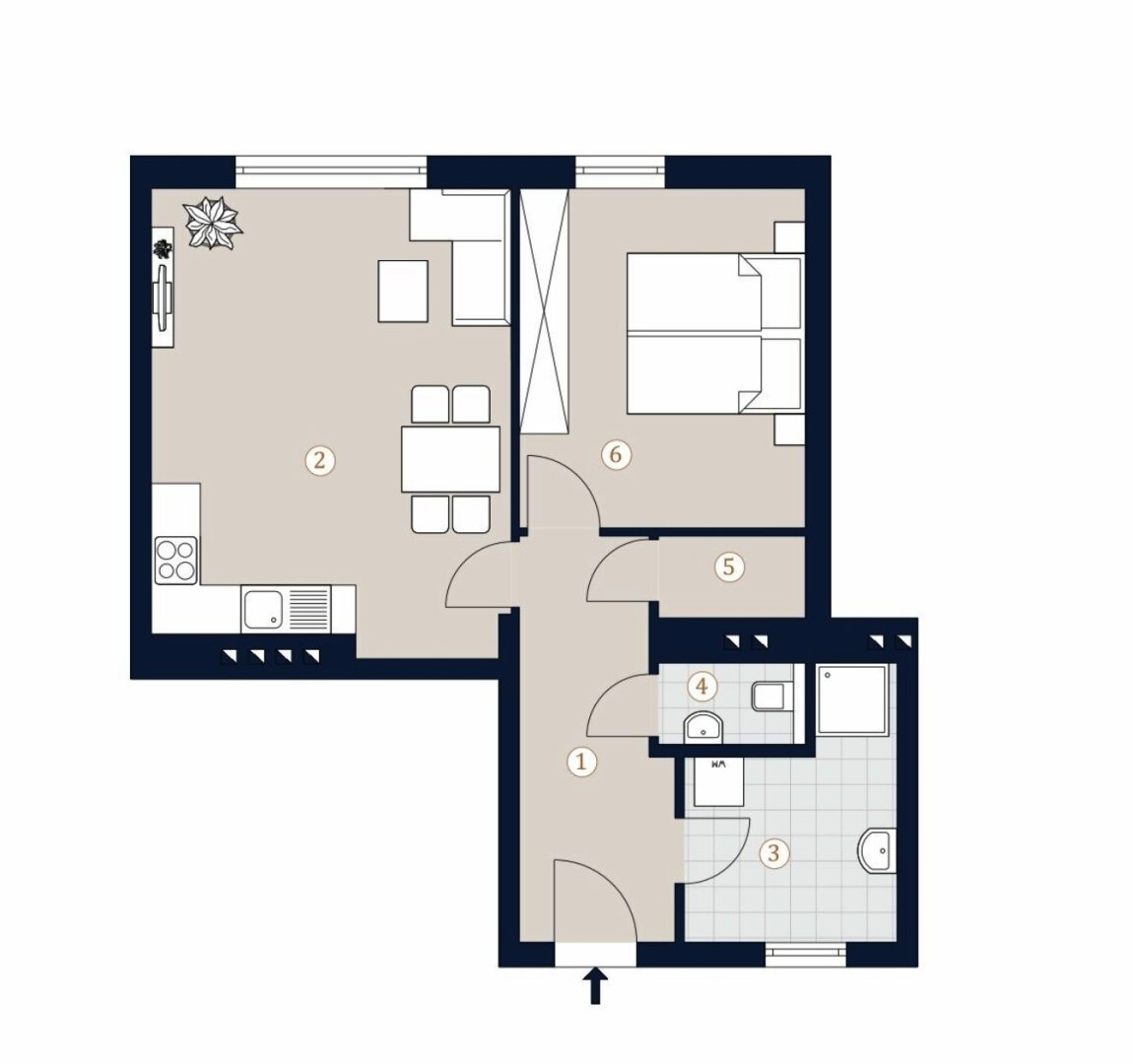 Die 2-Zimmerwohnung mit einer Wohnfläche von ca. 56 m² teilt sich wie folgt auf: