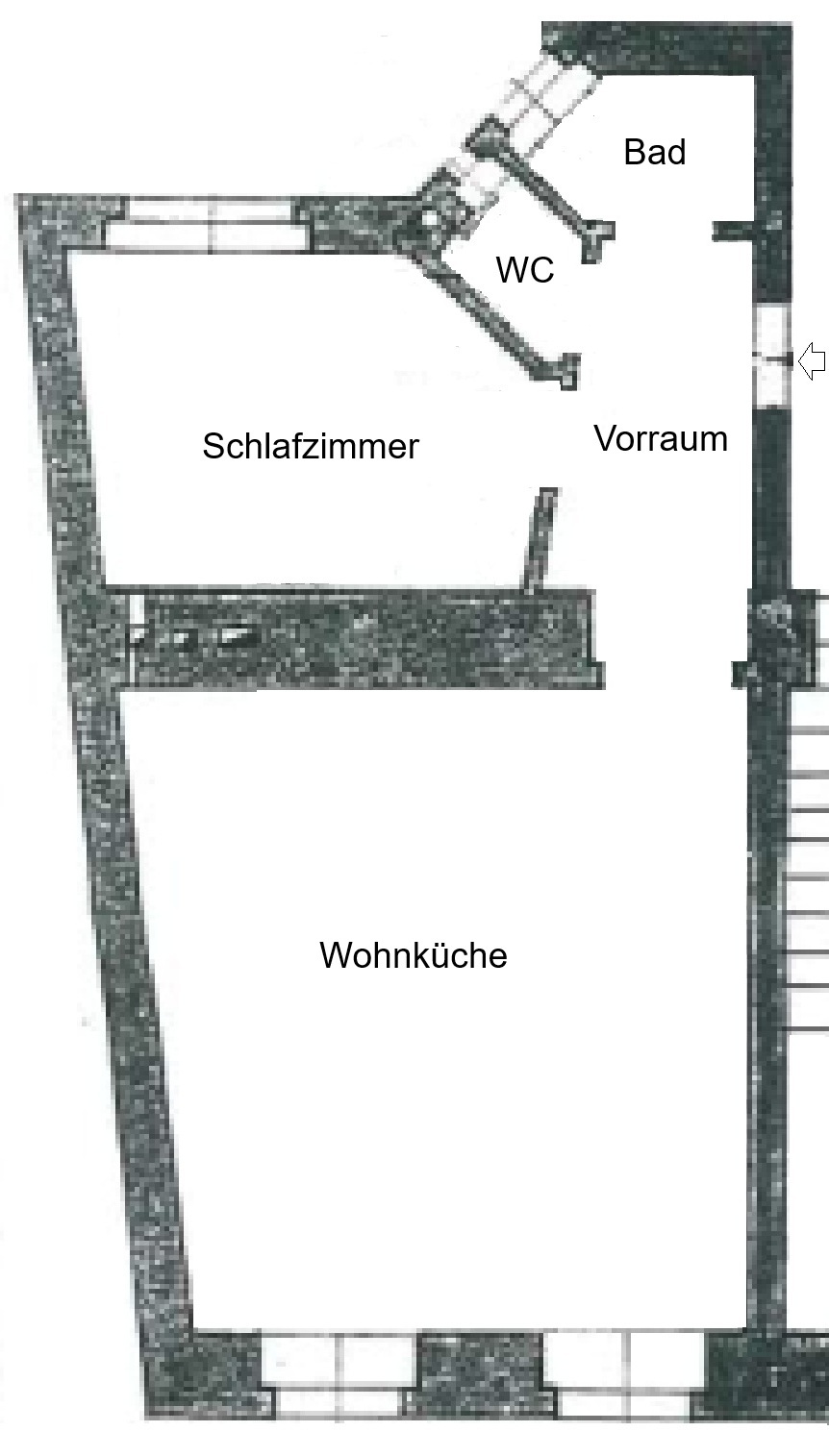 Es bestehen leichte m²-Differenzen zwischen dem Nutzwertgutachten (44,80m²) und dem Plan (41,96m²).