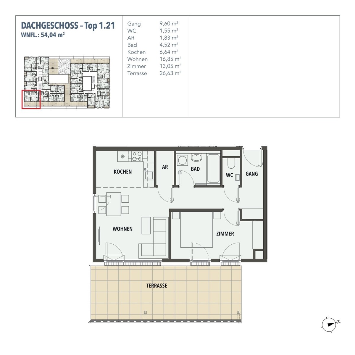 Die Immobilie liegt im 21. Bezirk Wiens, im Nordosten Wiens, in einer gut entwickelten Wohngegend mit guter Grünraum- und Infrastrukturversorgung.