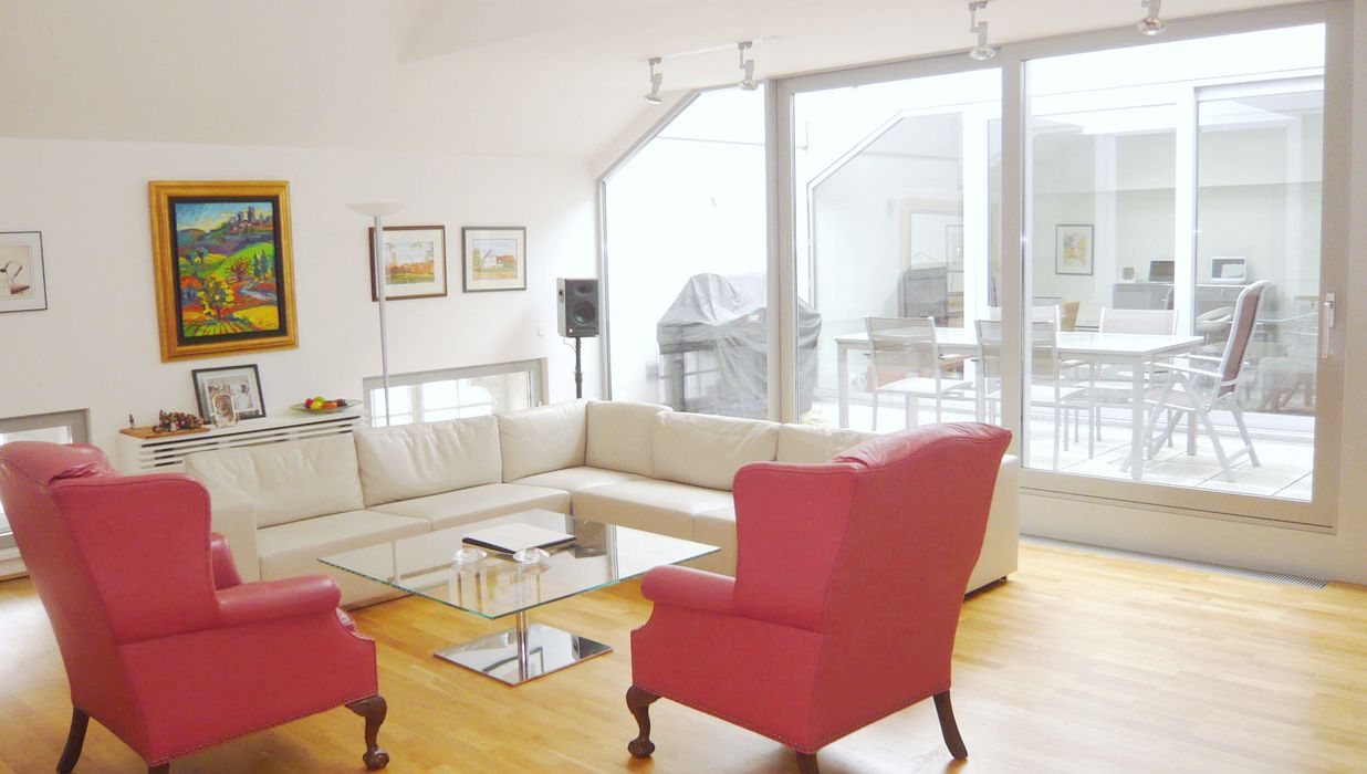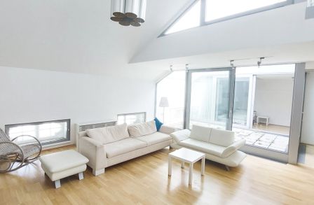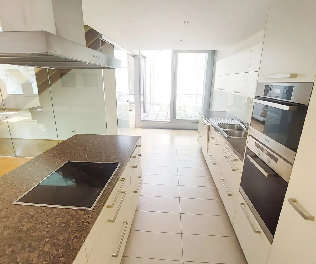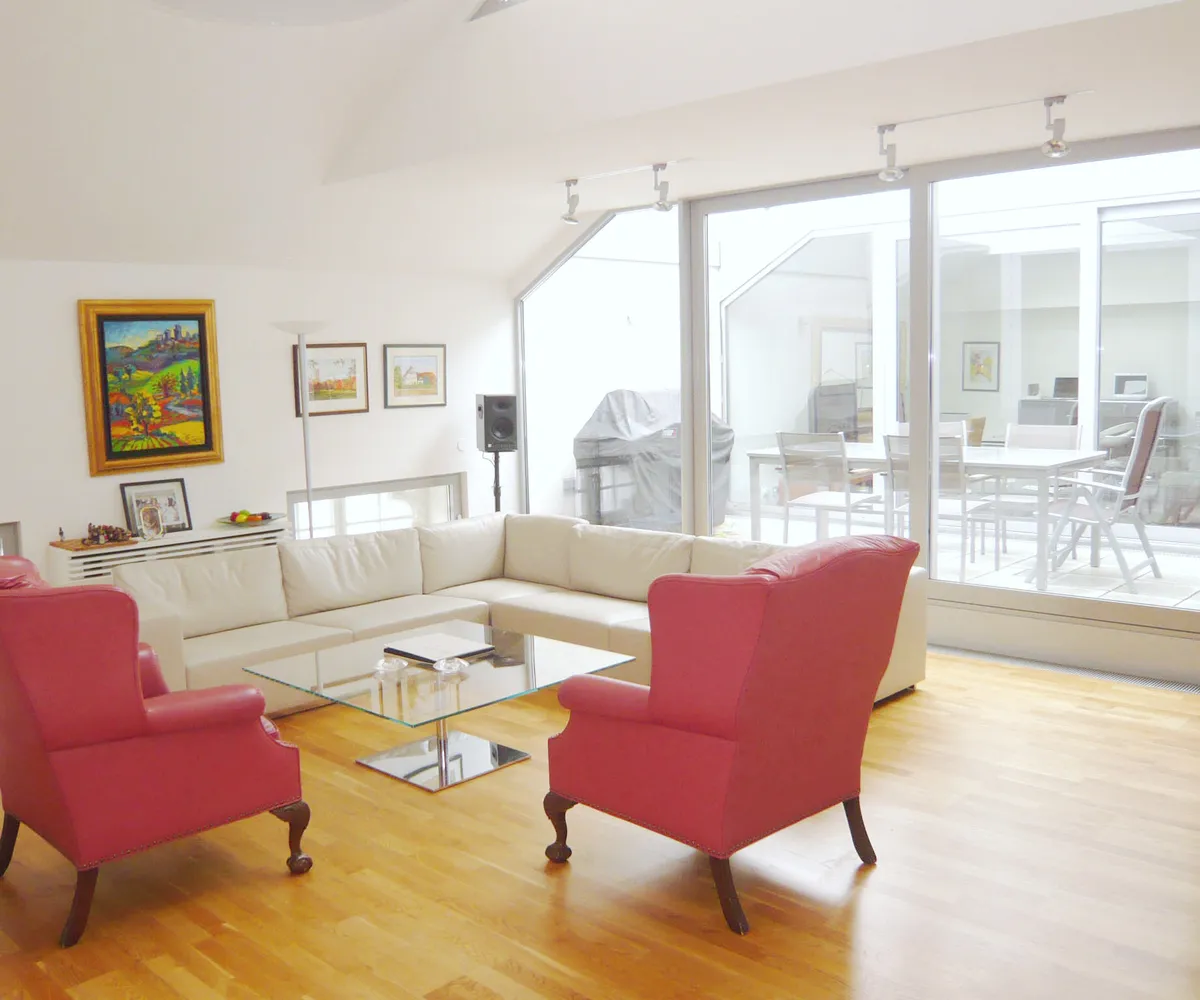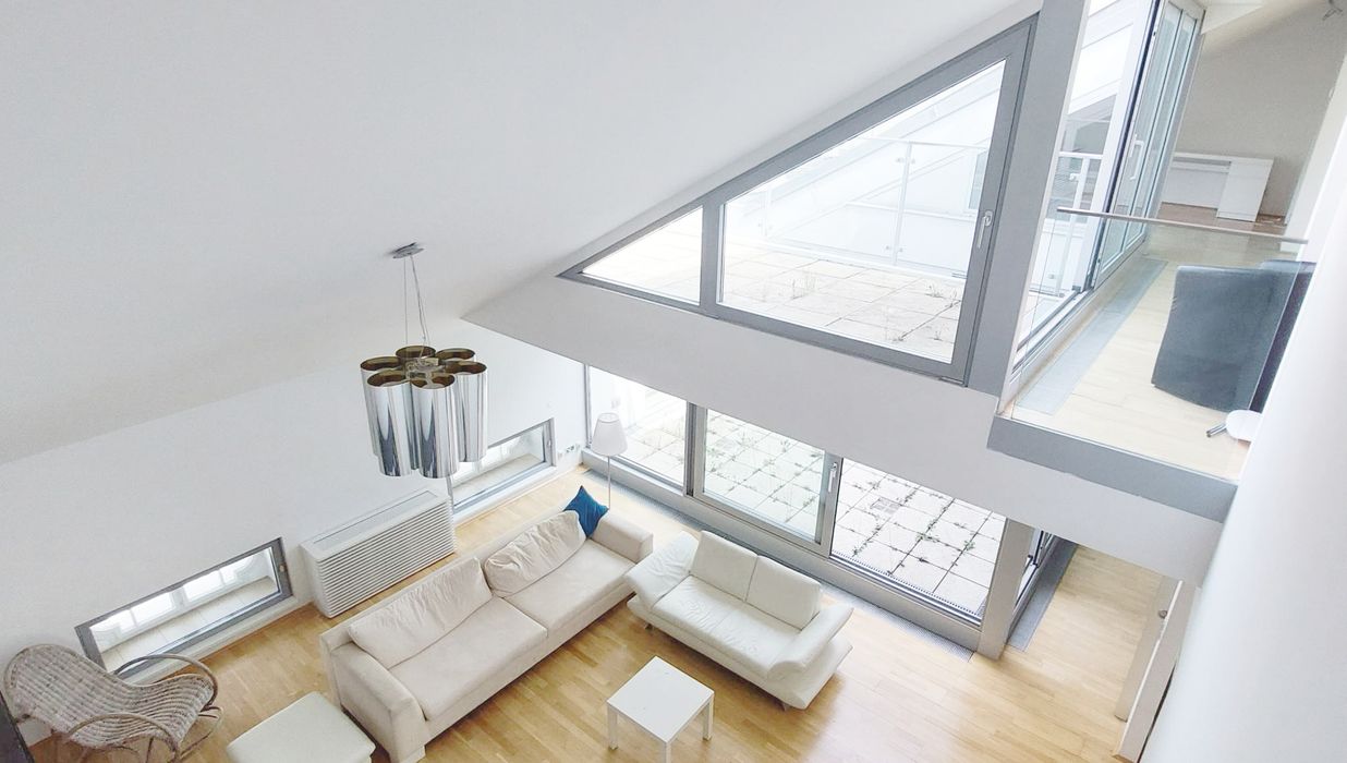 Diese exklusive Dachgeschoß-Wohnung beeindruckt durch ihre traumhafte Aussicht, eine gefällige Raumaufteilung und verbindet harmonisch modernes Design mit praktischer Funktionalität.