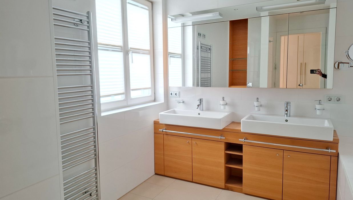 Diese Wohnung wurde mit edlen Materialien und eleganten Details gestaltet und bietet hohen Wohnkomfort. Sie verfügt in Summe über 5 Zimmer, 4 Badezimmer und 3 WCs, einen geräumigen Wirtschaftsraum.