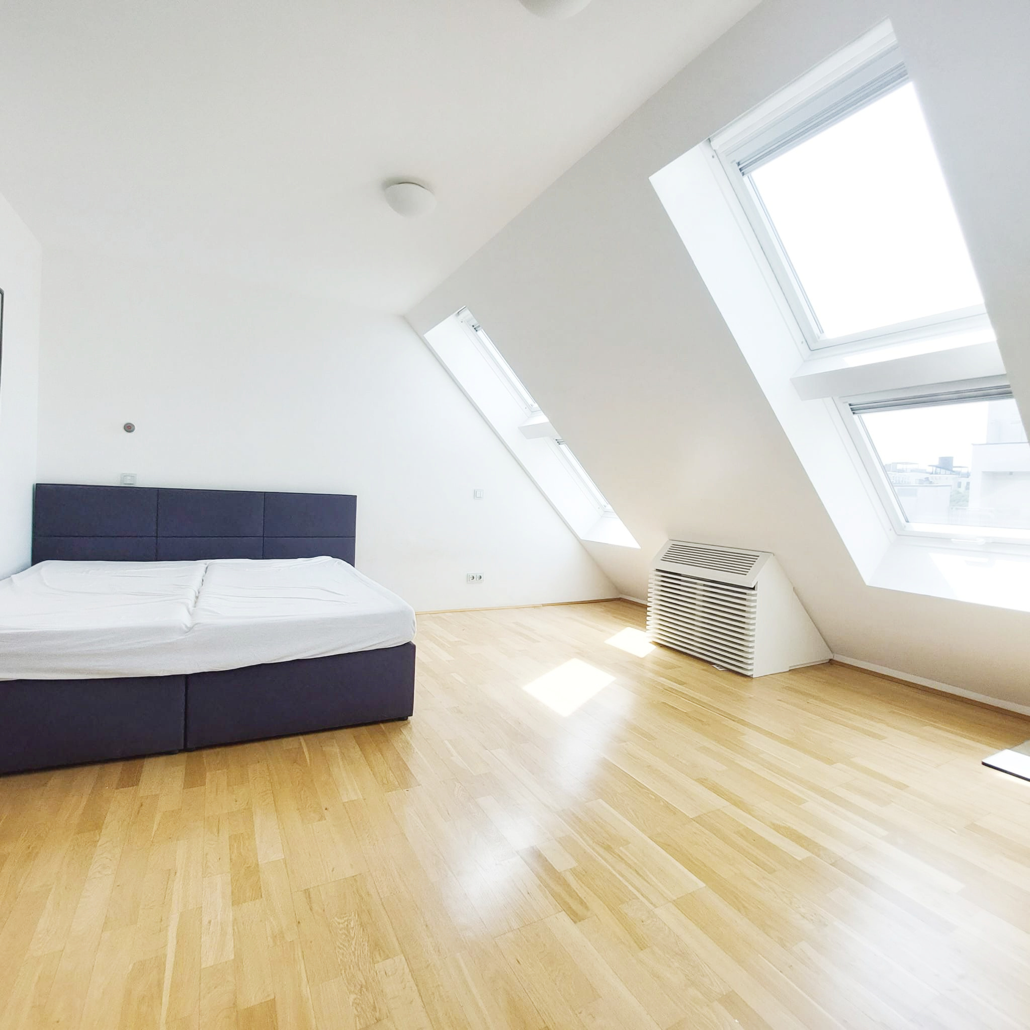 Über eine Holzstiege erreicht man das 2. Dachgeschoß, das über ein etwa 53 m² großes Studio mit Blick auf den Wohnbereich und ein weiteres Schlafzimmer verfügt. Hier erwarten Sie zudem zwei Terrassen, die wie geschaffen sind, den Morgen zu begrüßen oder den Tag in Ruhe zu beschließen. Das Studio bzw. die Galerie sorgt für Leichtigkeit in dieser schönen Wohnung.