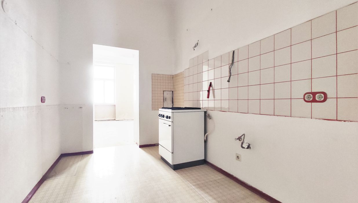 Die Wohnung bietet zwei große Zimmer, ein hofseitiges Kabinett, Küche und Bad – ausreichend Wohnraum und Gestaltungsspielraum. Mit kreativen Ideen lässt sich hier ein schönes Zuhause schaffen.