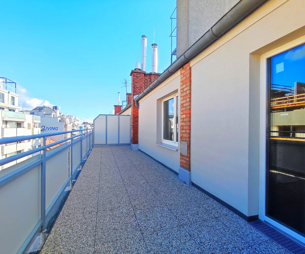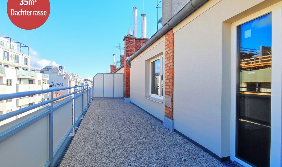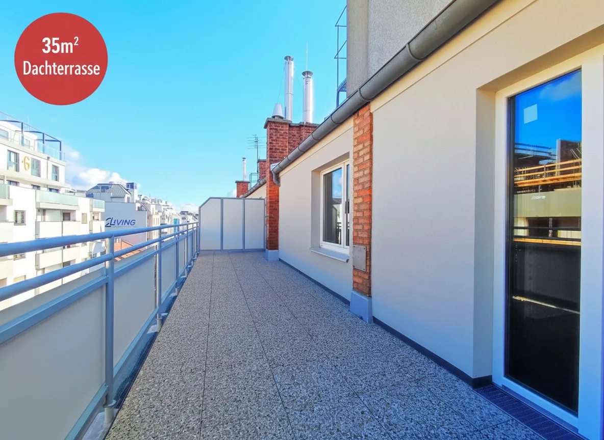 Die großzügige Dachterrasse mit 35 m² bietet einen wunderbaren Blick über die Umgebung.