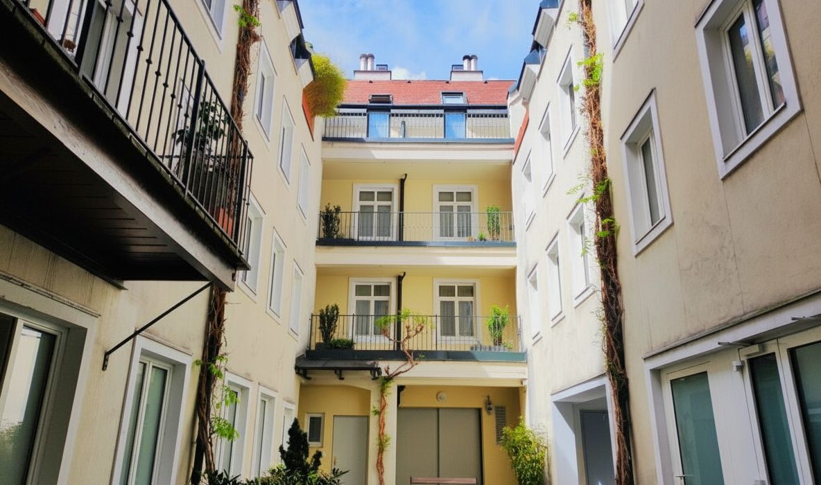 In einem entzückenden Haus gelegen, mit einem Ruhe spendenden, hofseitigen Balkon, fasziniert diese etwas andere Immobilie.