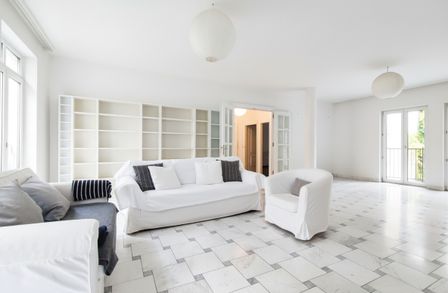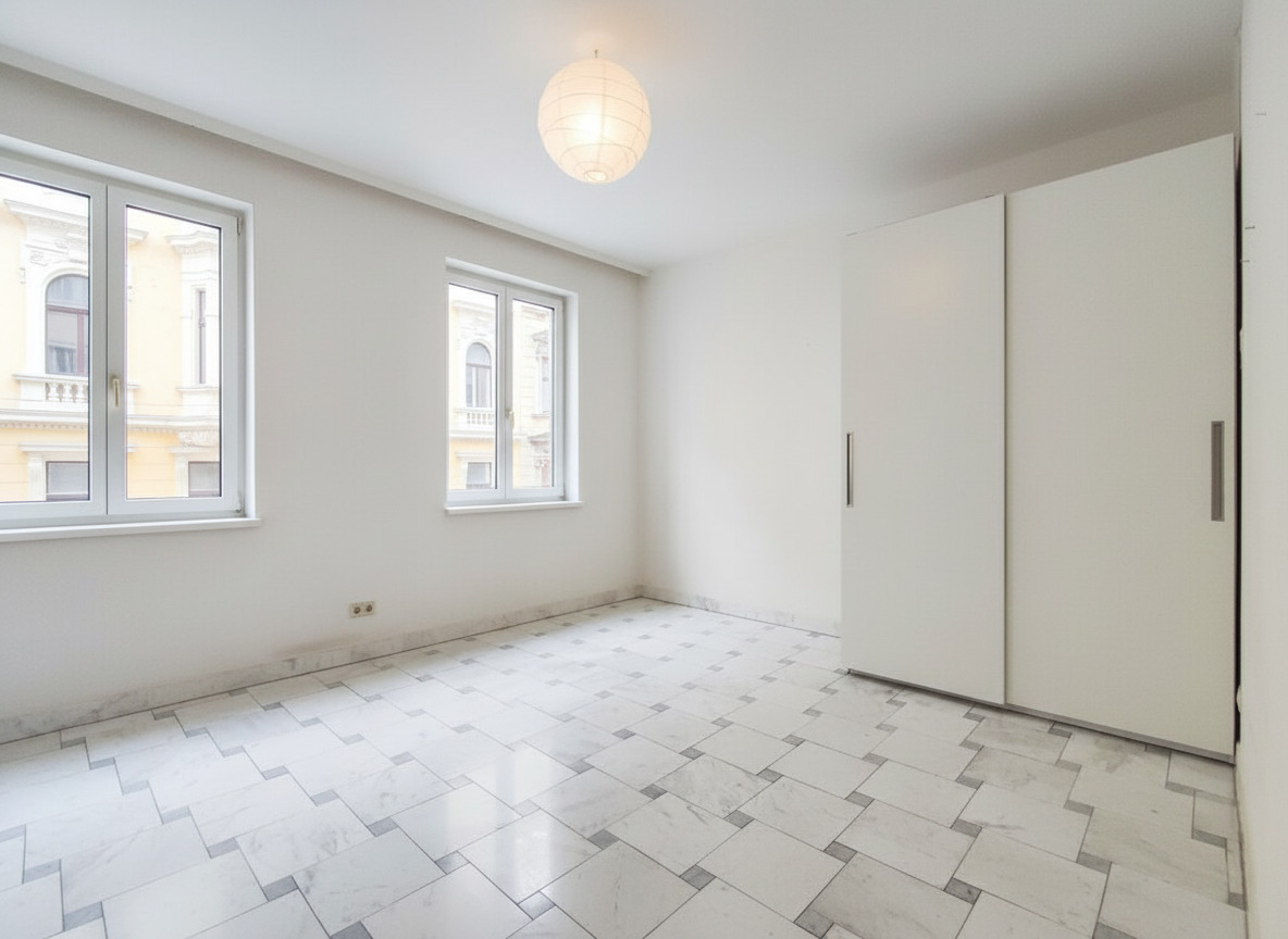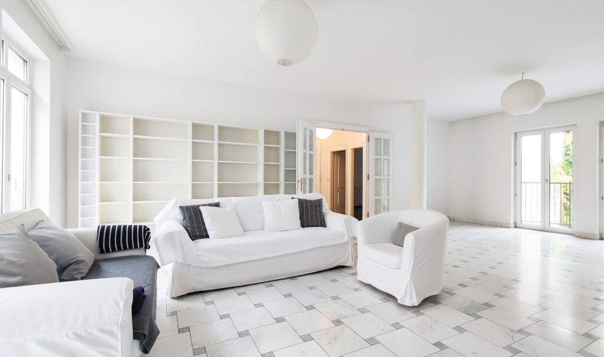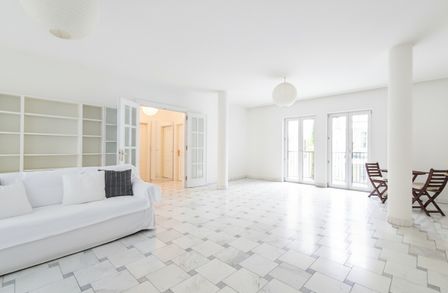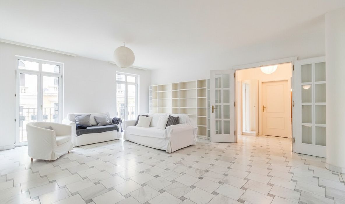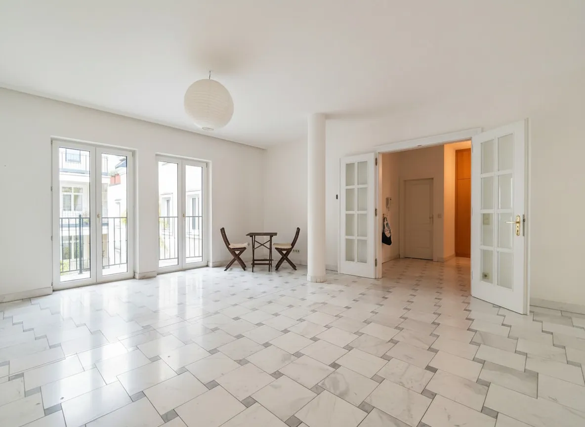 Die Wohnung überzeugt durch ihre Großzügigkeit und Offenheit – lichtdurchflutete Räume mit klassisch eleganten Flügeltüren und hellen Marmorböden schaffen ein beeindruckendes Raumgefühl und unterstreichen die ruhige, klare Atmosphäre.