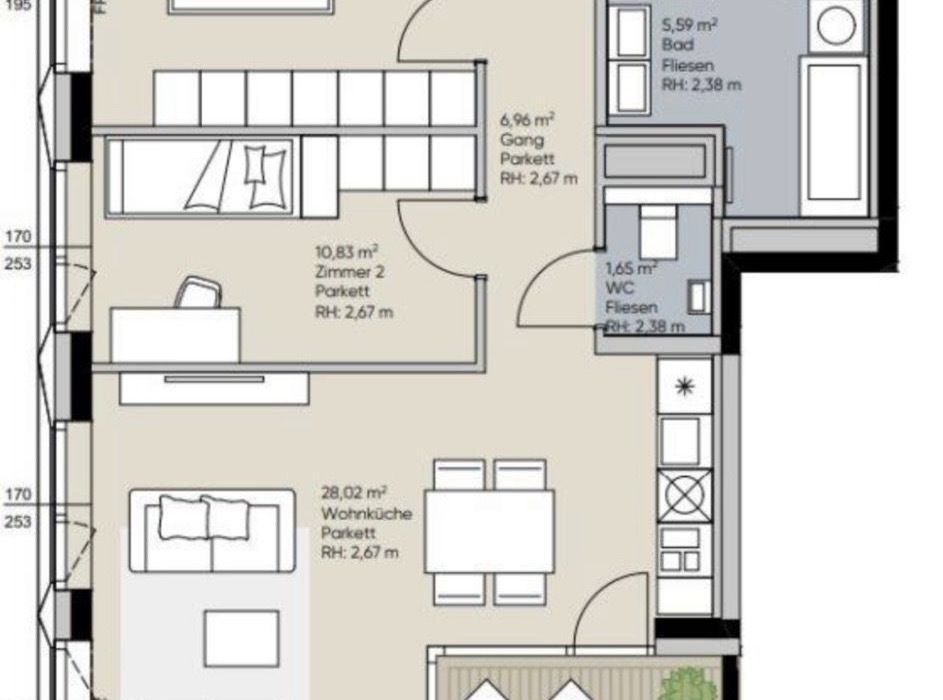 5) TOP 111: 72,62 m² Brutto Miete: EUR 2323,84 (inklusive USt., Betriebskosten und Verwaltung)