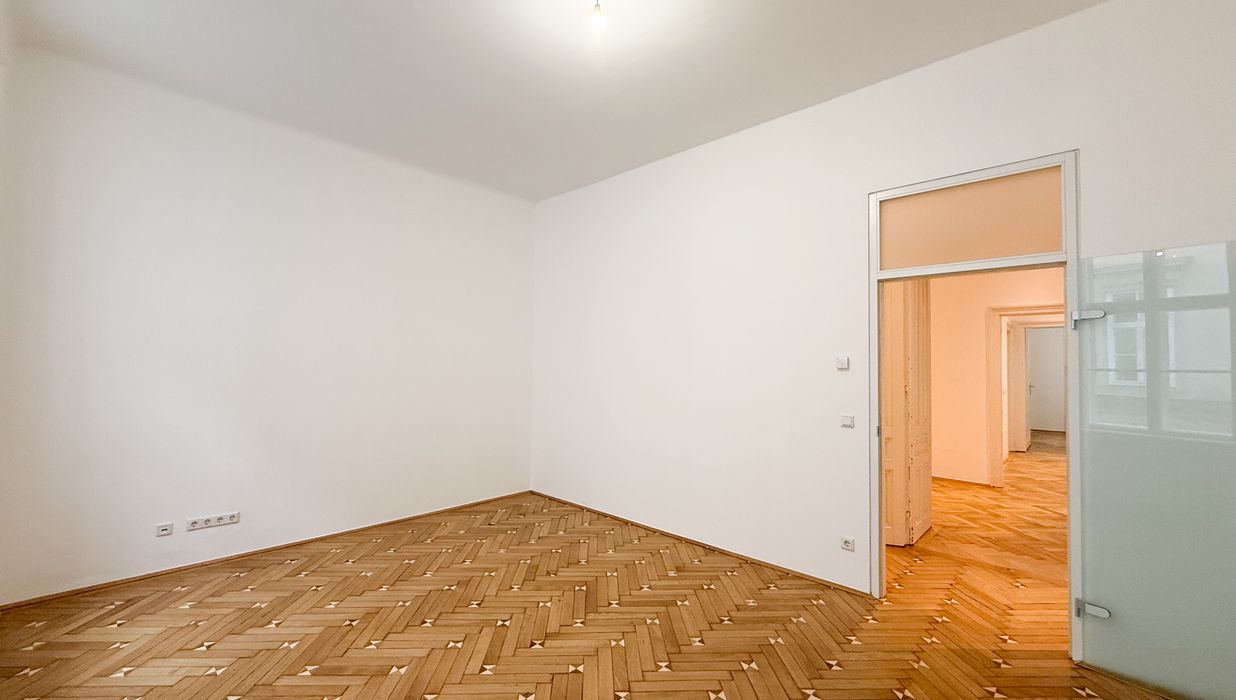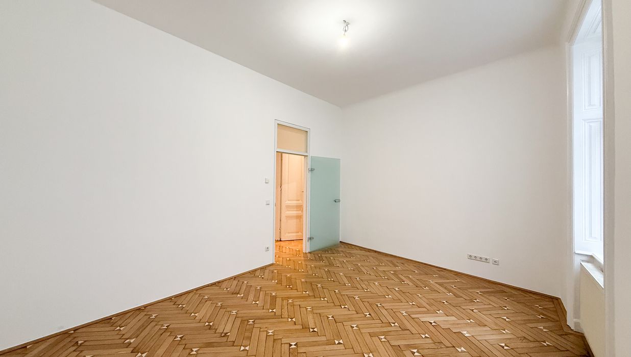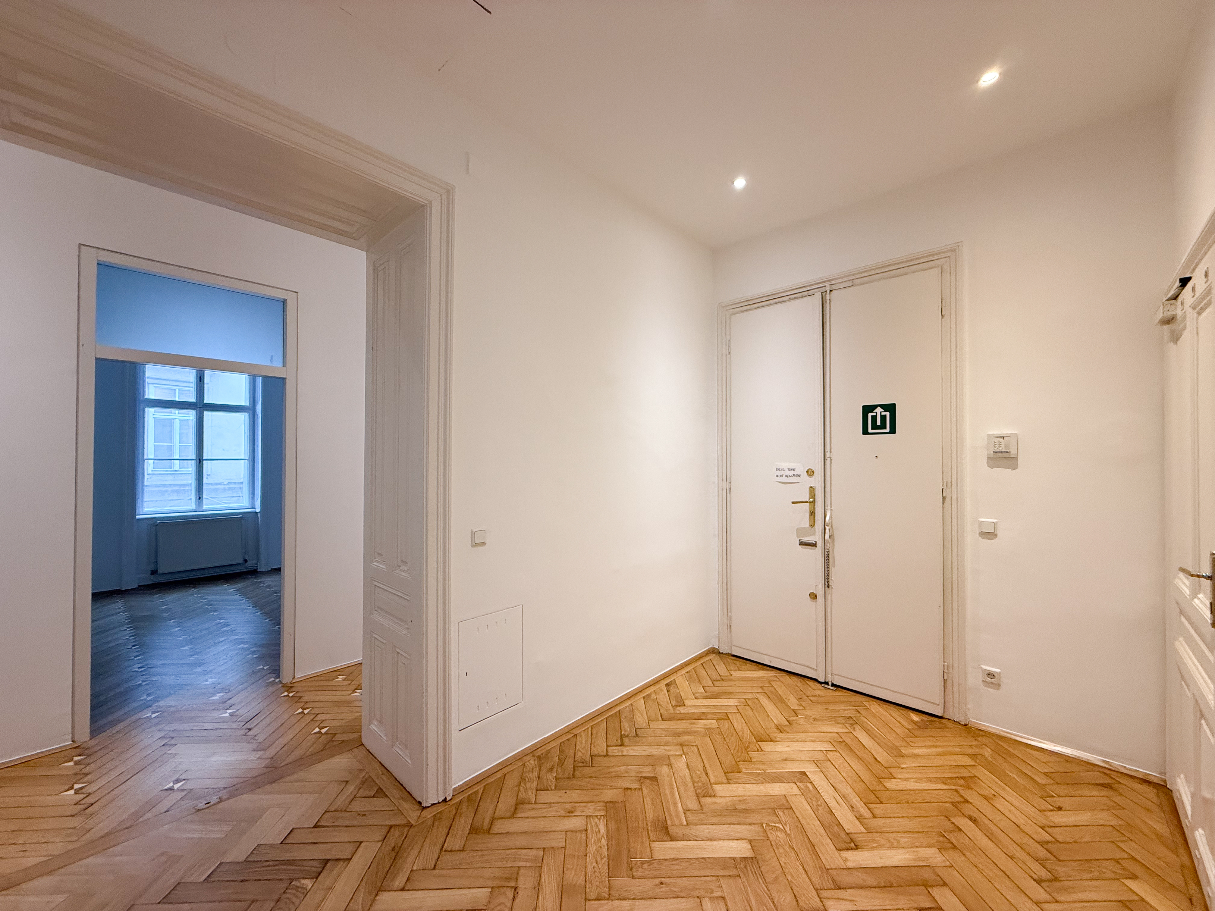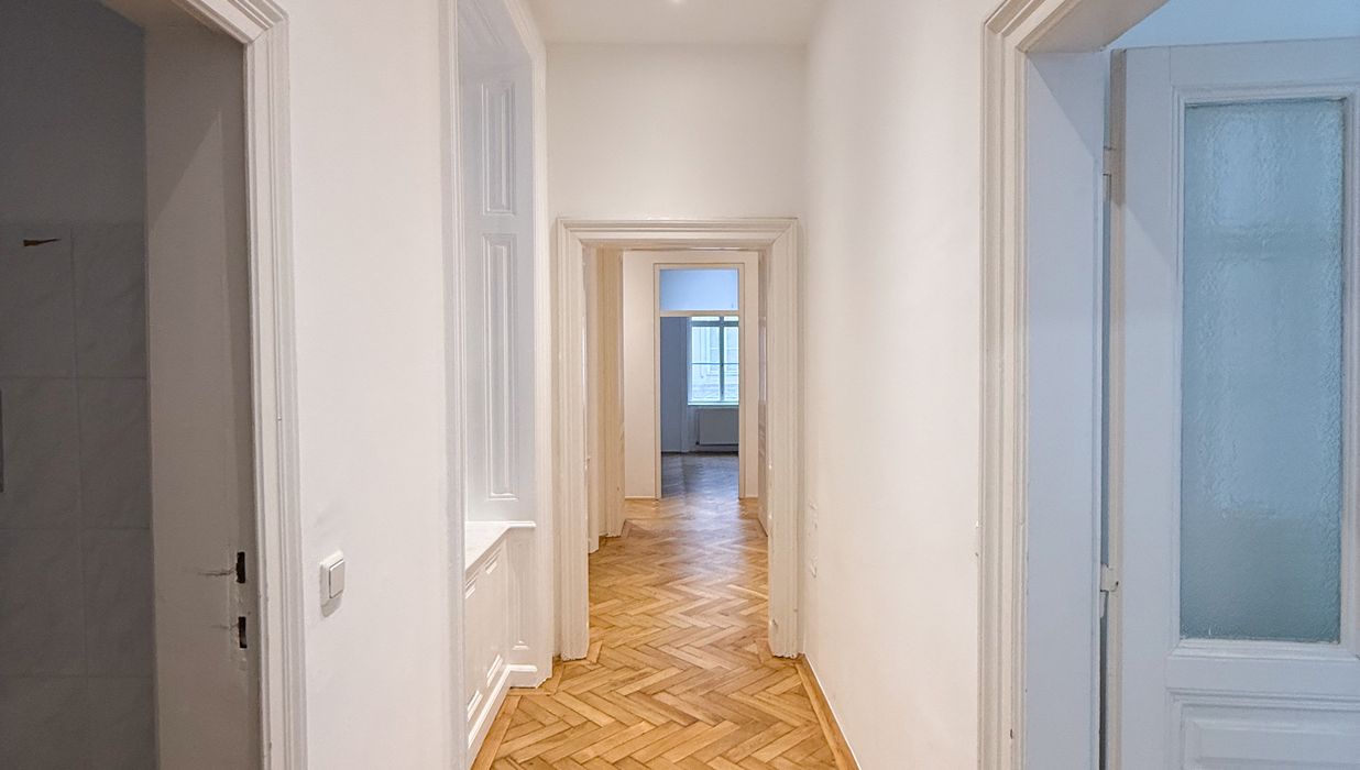 Über einen zentralen Vorraum sind die einzelnen Räume gut und übersichtlich erschlossen. Die Wohnräume sind mit Parkettböden ausgestattet, die kürzlich neu abgeschliffen wurden , und vermitteln in Kombination mit den frisch ausgemalten Wänden ein gepflegtes und zeitloses Wohngefühl.