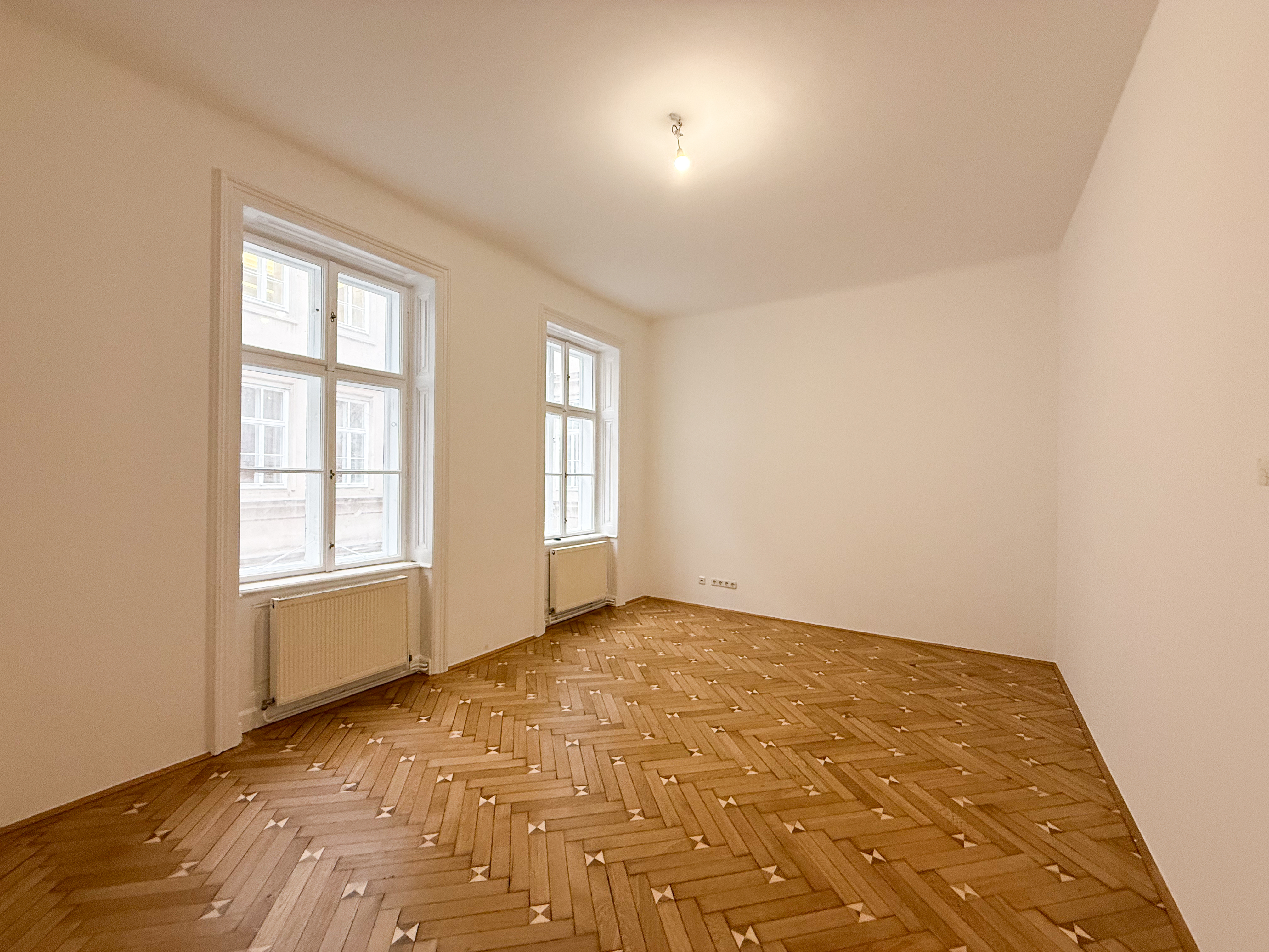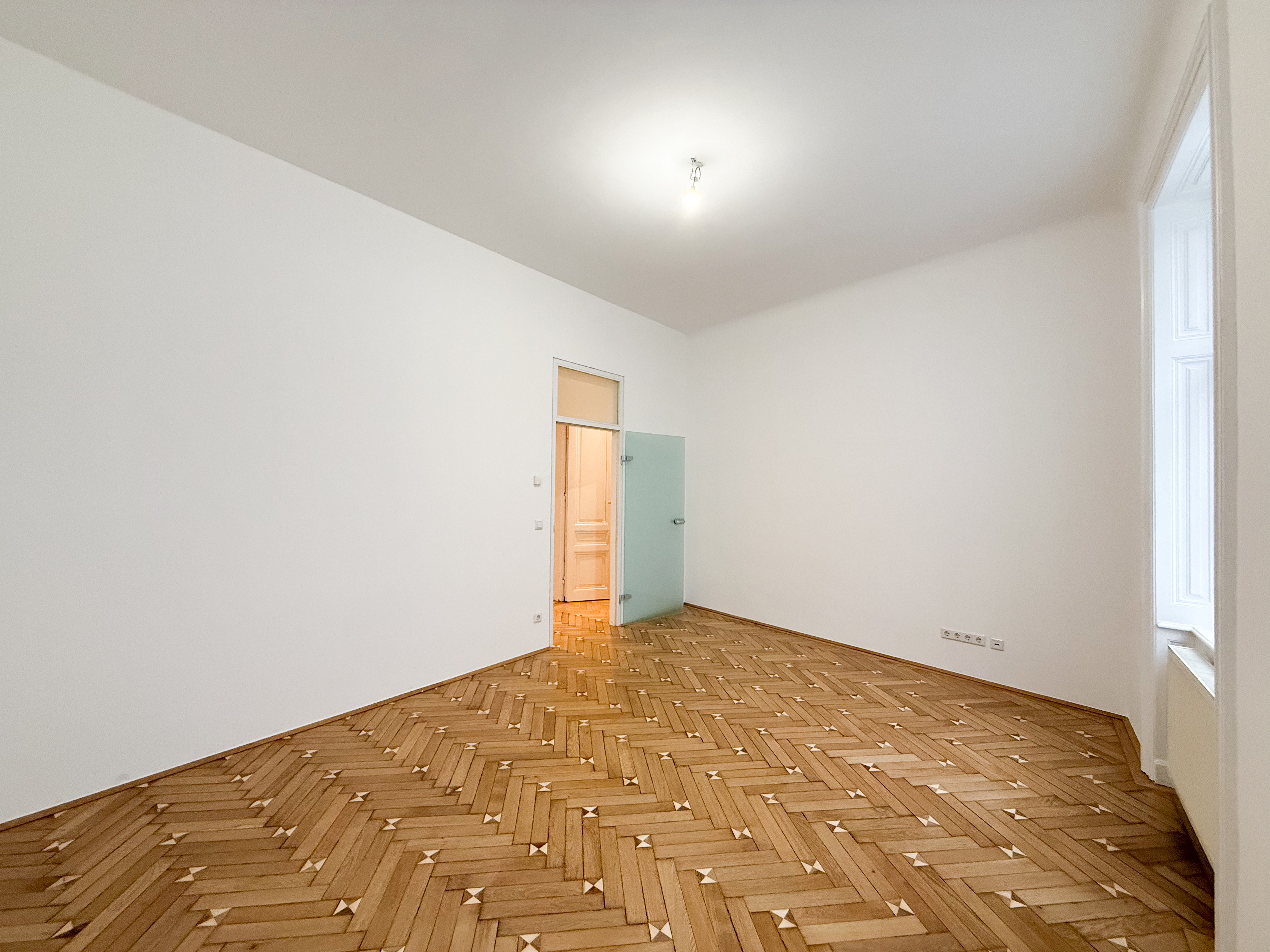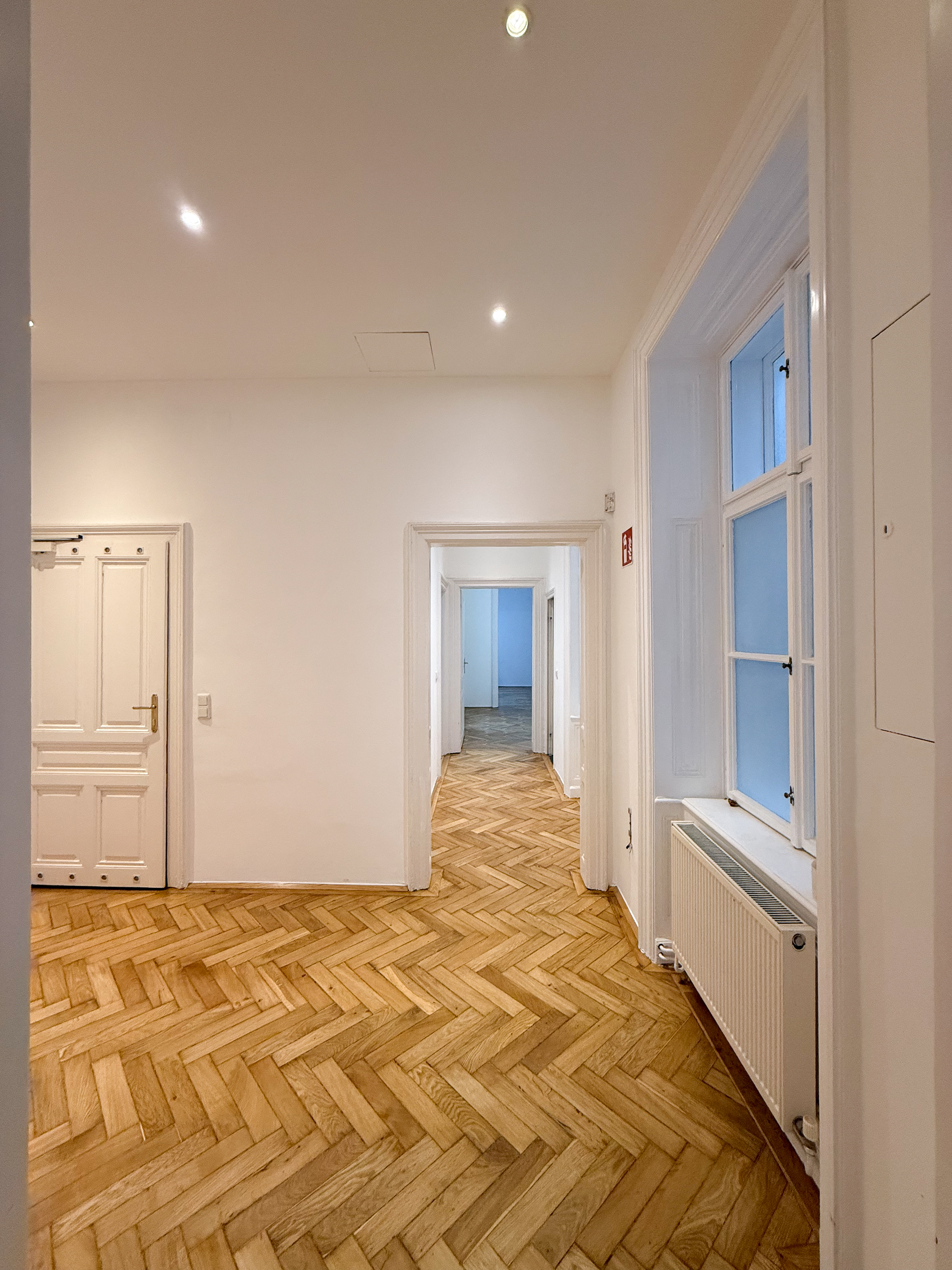 Über einen zentralen Vorraum sind die einzelnen Räume gut und übersichtlich erschlossen. Die Wohnräume sind mit Parkettböden ausgestattet, die kürzlich neu abgeschliffen wurden , und vermitteln in Kombination mit den frisch ausgemalten Wänden ein gepflegtes und zeitloses Wohngefühl.