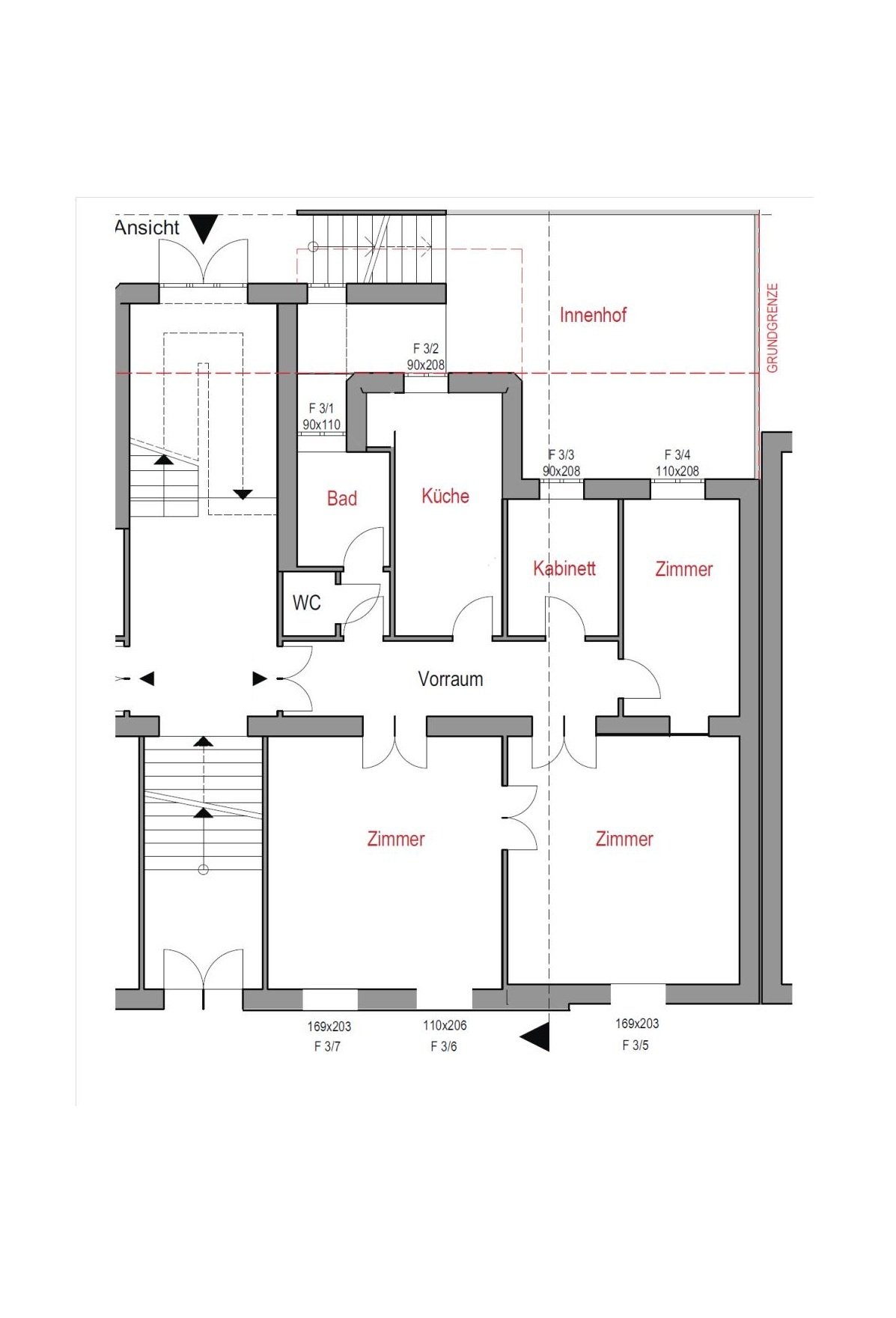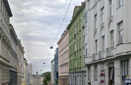 Die Wohnung liegt im Hochparterre im vorderen Teil der Liegenschaft. Dieser Teil wurde 1913 errichtet und ist somit ein Altbau und der hofseitige Teil wurde 1982 (Neubau) errichtet.