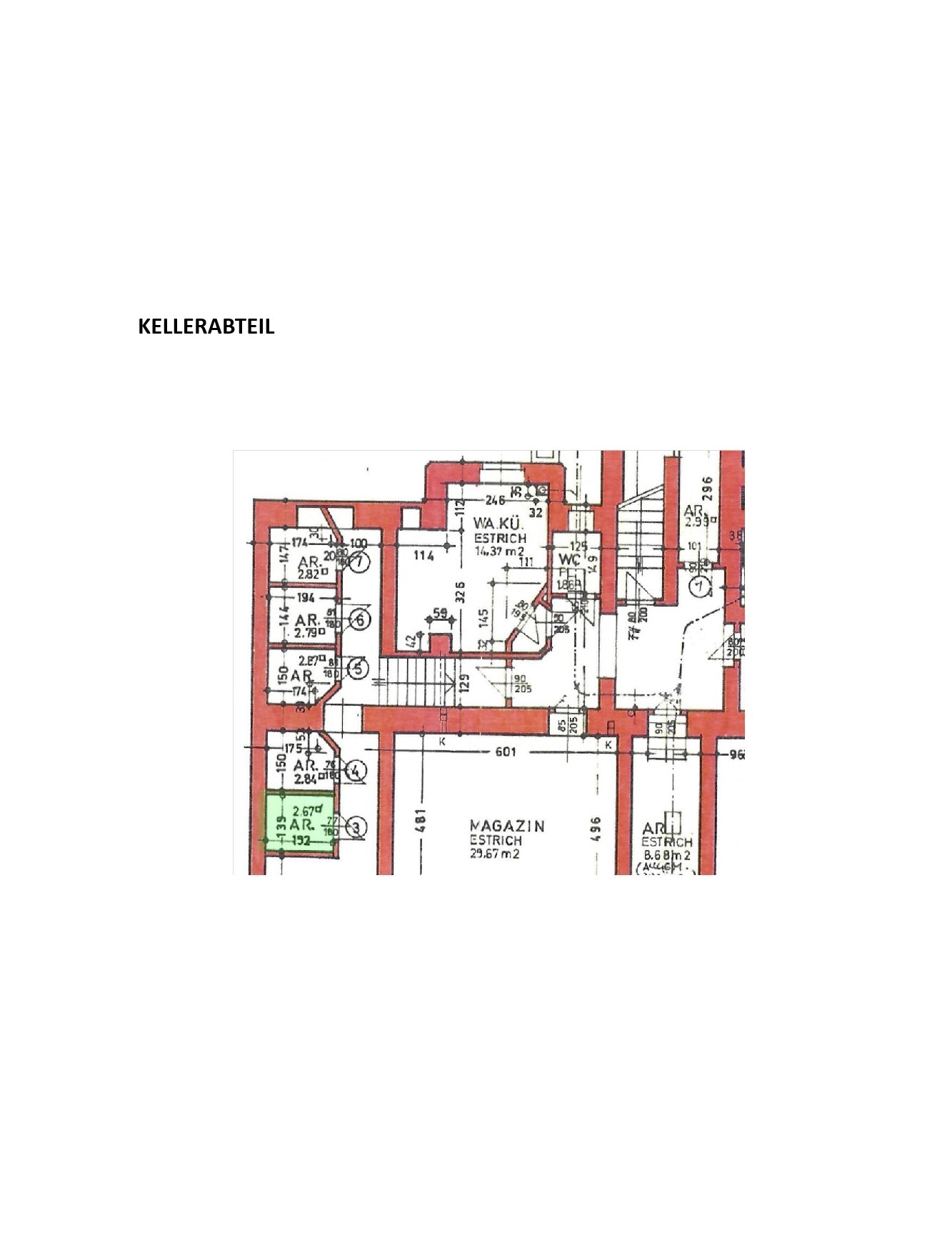 Raumaufteilung: Die Wohnfläche von 92,85m² und teilt sich in Wohnzimmer, Küche, 2 Schlafzimmer, 1 Kabinett, Bad mit Fenster (ausgestattet mit Dusche, Waschmaschinenanschluss und Handtuchheizkörper), WC (mit Handwaschbecken und Heizkörper) und ein Vorraum von dem alle Räume zentral zu begehen sind. Ein Einlagerungsraum im Keller mit 2,67 ist vorhanden.