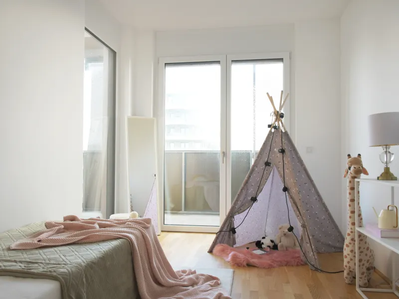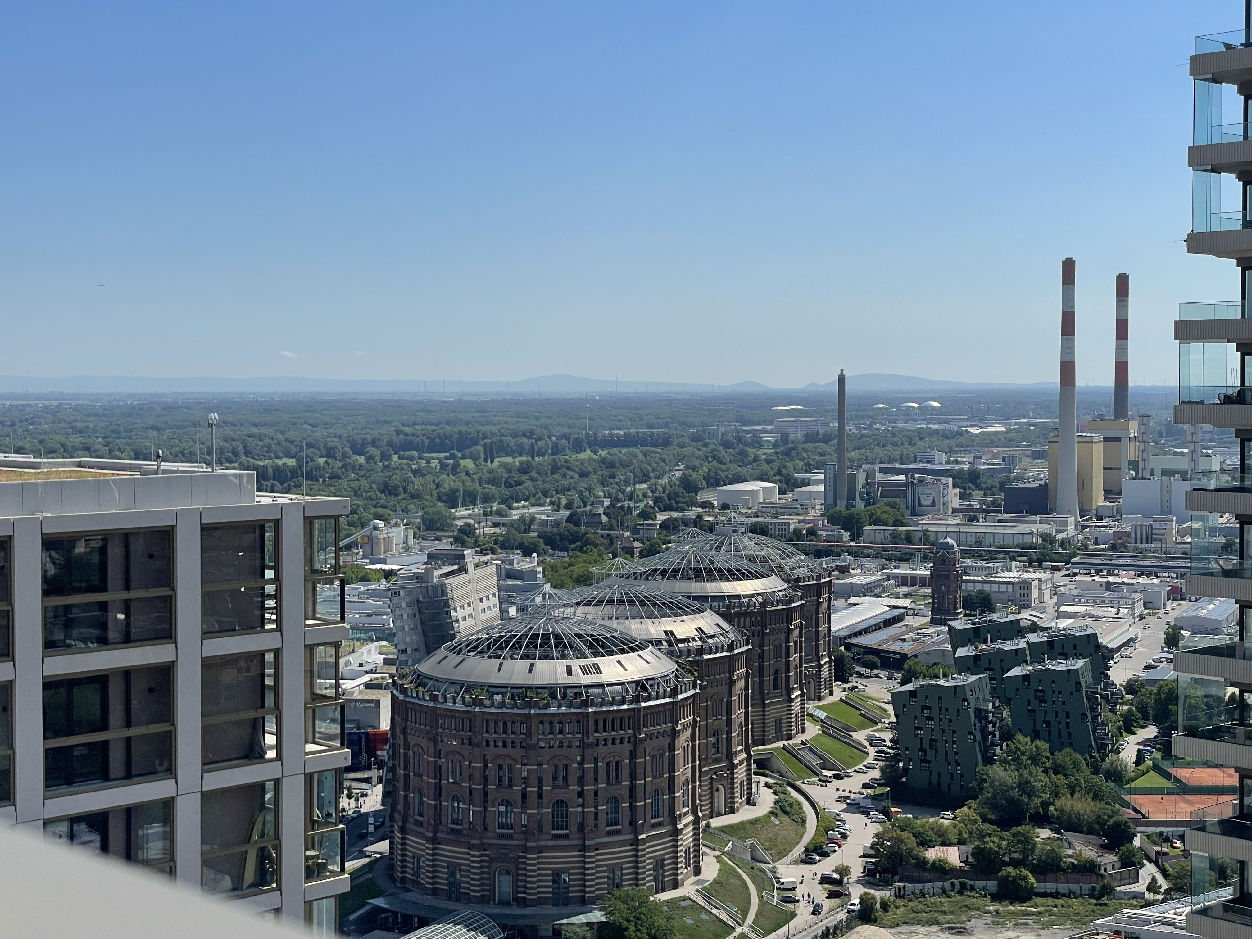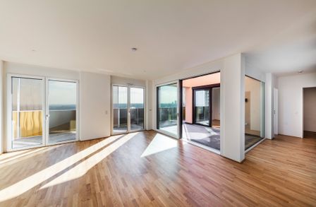 Auch außerhalb der Wohnung sind zahlreiche Features und Extras im Angebot: Ein Fitnessraum für Cardio und Krafttraining, ein Wellnessbereich mit Sauna und Dampfbad, Gemeinschaftsräume mit Küchen, ein Laundry-Room mit Waschmaschinen und Wäschetrocknern, Gemeinschaftsräume, Hobbyräume sowie eine großzügige Terrasse mit Schattigen Plätzen, Kinderspielplatz, und eine Strecken-Laufbahn für sportliche Bewohner. Das alles mit beeindruckendem Ausblick über Wien.