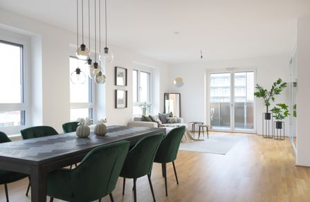 Nachhaltigkeit wird auch hier großgeschrieben, dank durchdachter vertikaler Struktur, naturnaher Gestaltung und ökologischer Maßnahmen wie begrünten Flächen und nachhaltiger Klimaregulierung entsteht hier ein modernes, gesundes Wohnklima.