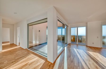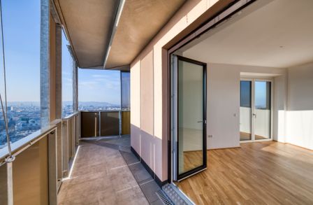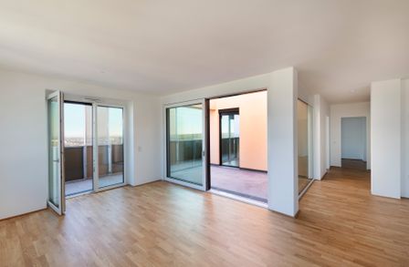 Auch außerhalb der Wohnung sind zahlreiche Features und Extras im Angebot: Ein Fitnessraum für Cardio und Krafttraining, ein Wellnessbereich mit Sauna und Dampfbad, Gemeinschaftsräume mit Küchen, ein Laundry-Room mit Waschmaschinen und Wäschetrocknern, Gemeinschaftsräume, Hobbyräume sowie eine großzügige Terrasse mit Schattigen Plätzen, Kinderspielplatz, und eine Strecken-Laufbahn für sportliche Bewohner. Das alles mit beeindruckendem Ausblick über Wien.