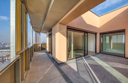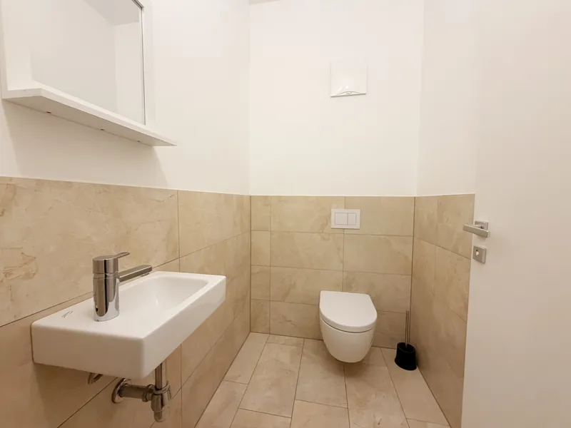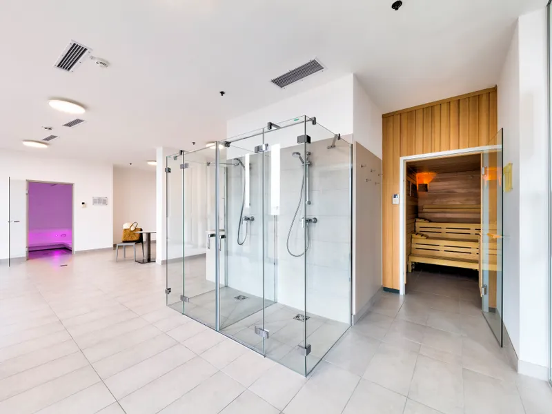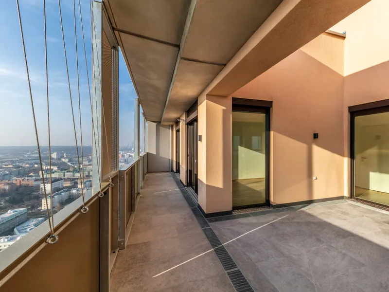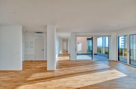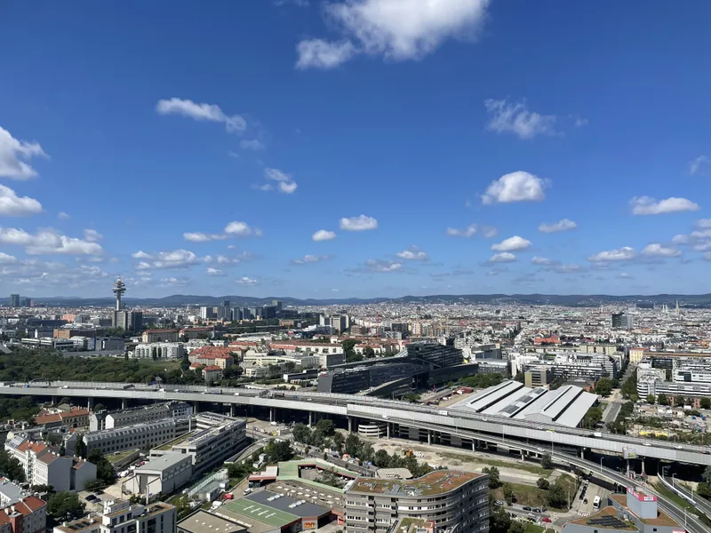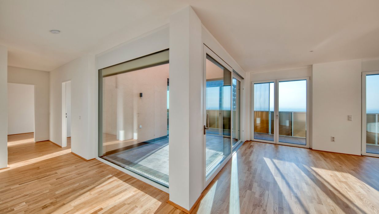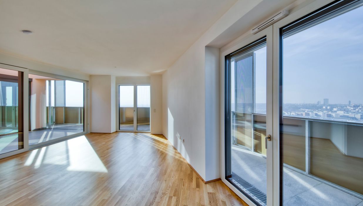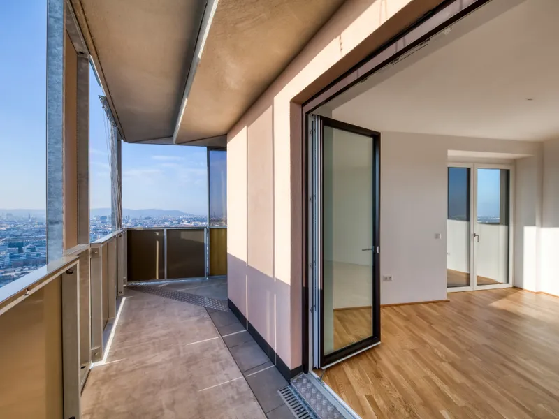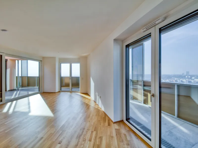Auch außerhalb der Wohnung sind zahlreiche Features und Extras im Angebot: Ein Fitnessraum für Cardio und Krafttraining, ein Wellnessbereich mit Sauna und Dampfbad, Gemeinschaftsräume mit Küchen, ein Laundry-Room mit Waschmaschinen und Wäschetrocknern, Gemeinschaftsräume, Hobbyräume sowie eine großzügige Terrasse mit Schattigen Plätzen, Kinderspielplatz, und eine Strecken-Laufbahn für sportliche Bewohner. Das alles mit beeindruckendem Ausblick über Wien.