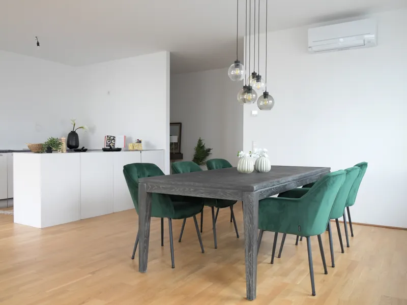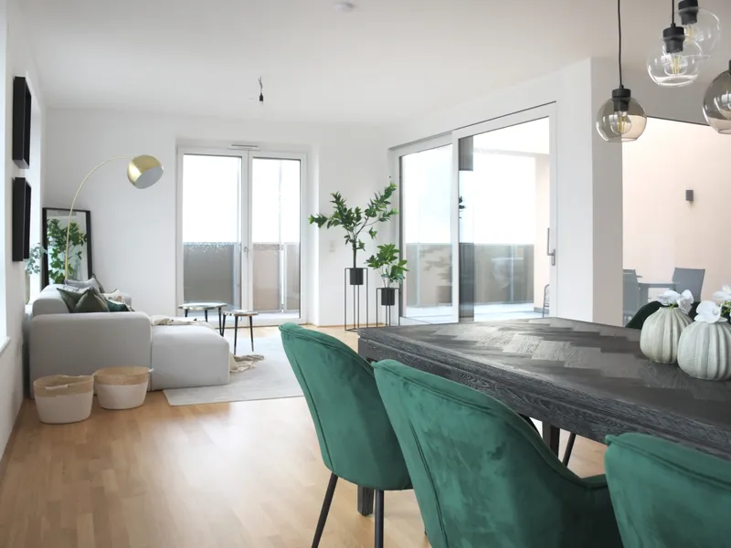Diese ca. 112 m² große 3-Zimmer-Wohnung vereint den perfekten Grundriss mit modernem Wohngefühl. Ein offener Wohn- und Essbereich mit großer Wohnküche bildet das Herzstück. Großzügig, hell und ideal für gemeinsame Familienzeit oder gemütliche Abende mit Freunden. Zwei Schlafzimmer bieten Rückzugsorte und Privatsphäre. Dazu kommen zwei Bäder, zwei WCs, Abstellraum und Garderobe – perfekt für das tägliche Leben mit Stil und Struktur. Und natürlich: alles zentral begehbar. Panorama Wohnung mit architektonischem Highlight.