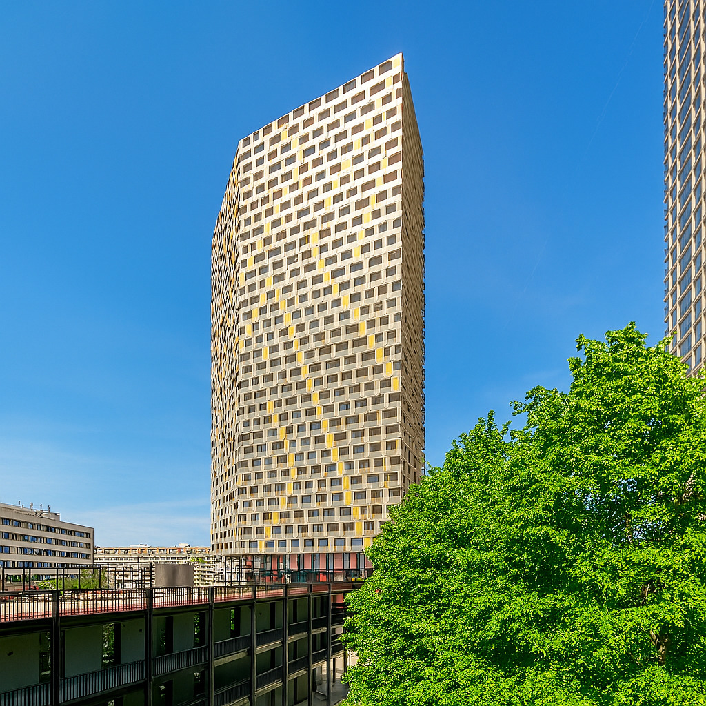 Das Quartier THE MARKS bietet alles für einen internationalen angesagten Lifestyle. Drei Hochhäuser, mit gemeinsamer Sockelzone und lebendigen Arkadengängen, begrünte Plätze, attraktive Gastronomie und Supermarkt.