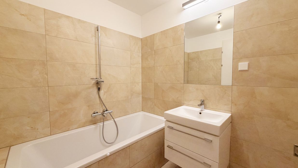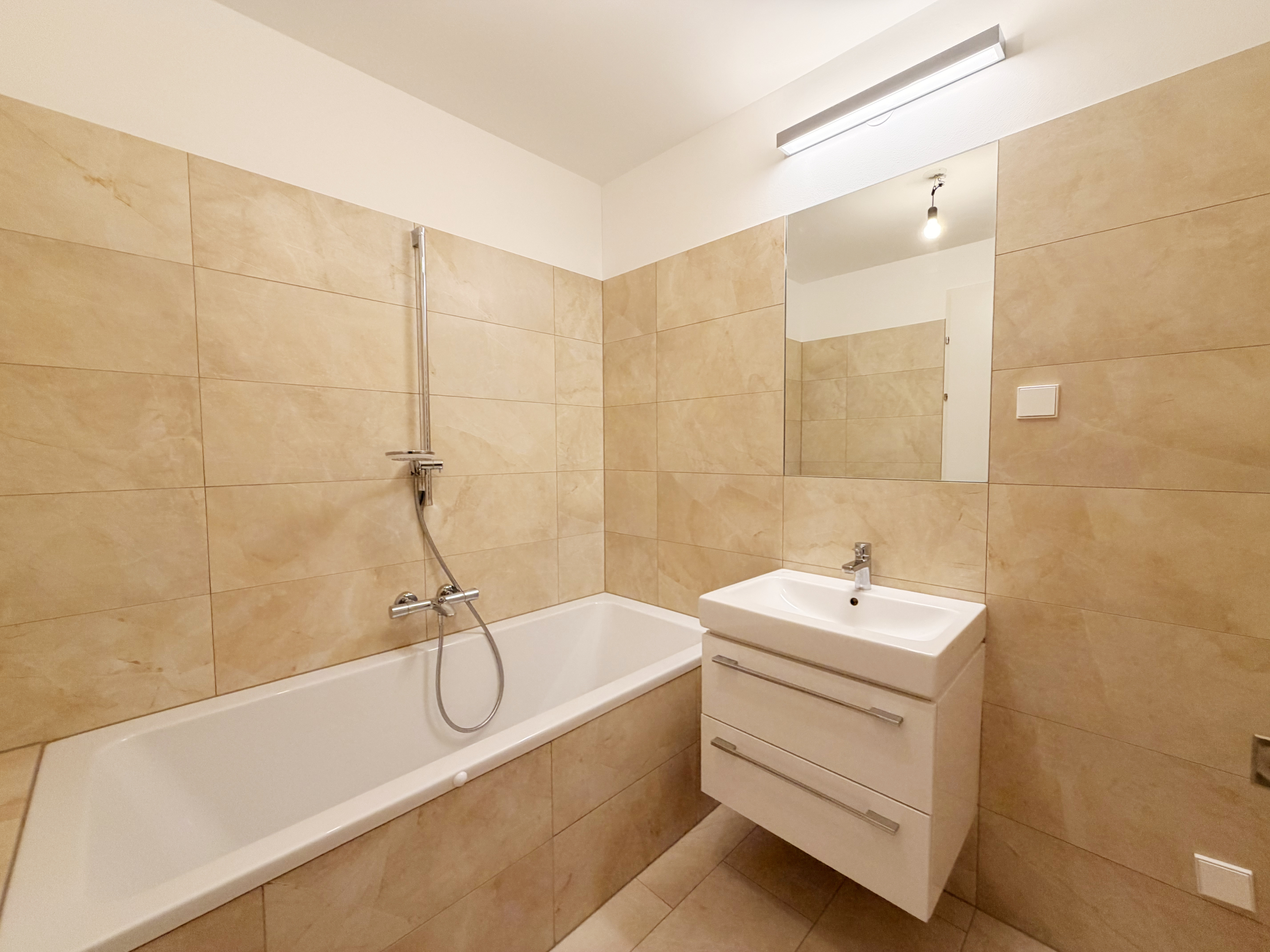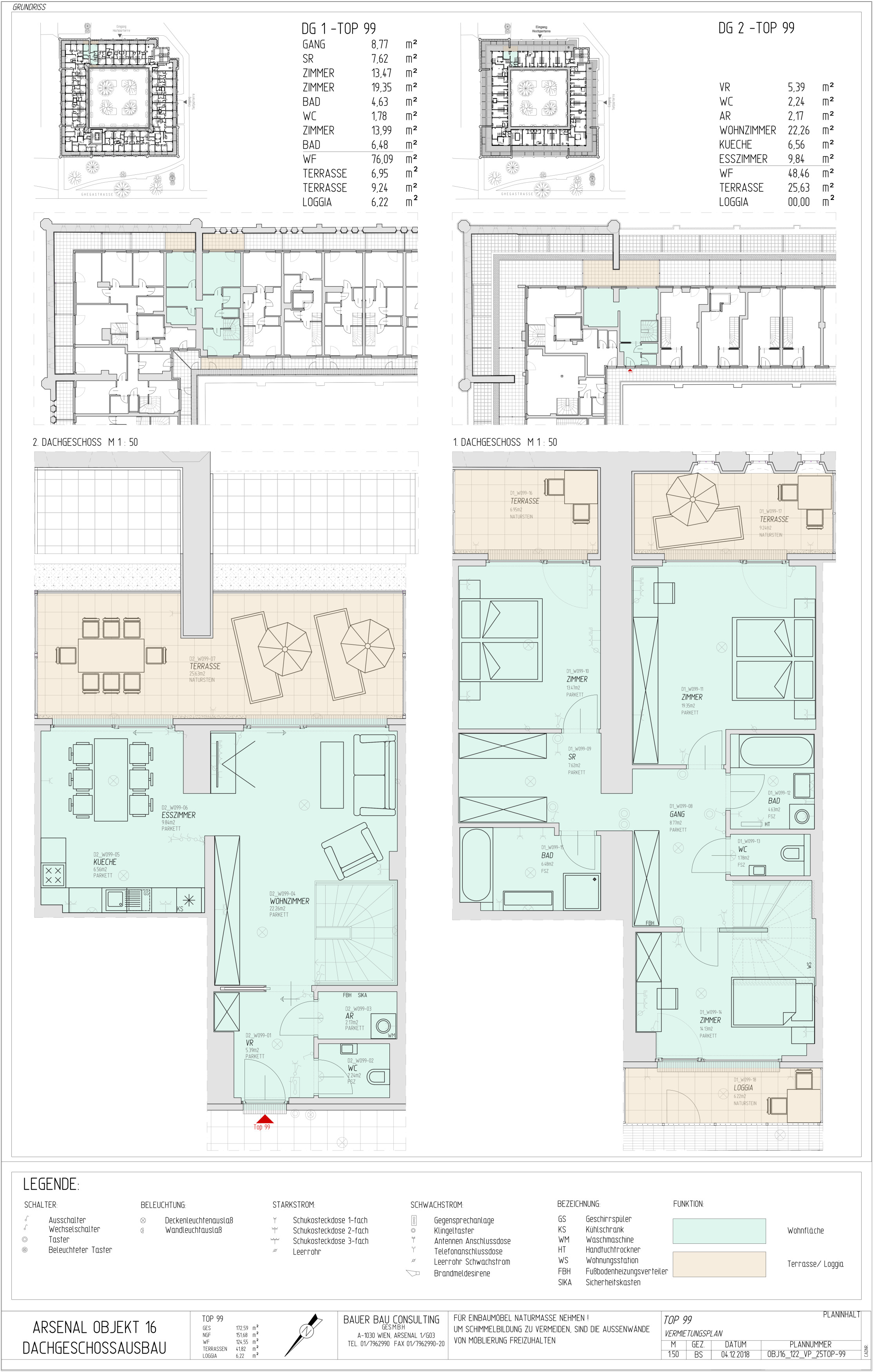 Die Wohnung streckt sich über das 1. und 2. Dachgeschoss und verfügt über eine großzügige Wohnküche mitt Essbereich, drei Schlafzimmer, ein Badezimmer mit Badewanne und Waschmaschinenanschluss, ein weiteres Badezimmer mit Dusche, Badewanne und Doppelhandwaschbecken, zwei separates WC, sowie einen Abstell- und Vorraum.