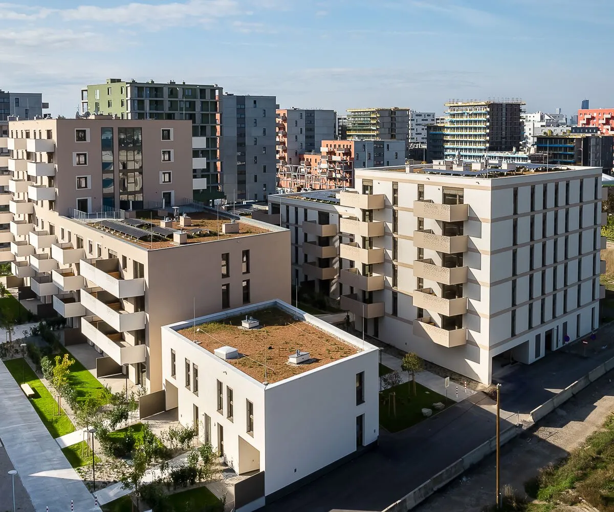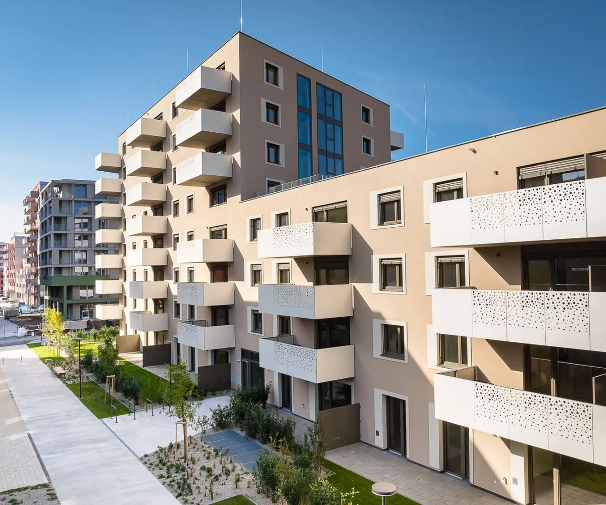 In der Donaustadt entsteht ein besonders attraktives Stadtquartier mit Wohnungen, Geschäften, Lokalen, Freiraum und zahlreichen Gemeinschafts- und Mobilitätsangeboten. Auch die Natur kommt nicht zu kurz, denn in unmittelbarer Nähe befindet sich der Badeteich Hirschstetten sowie die gleichnamigen, weitläufigen Blumengärten. Hinsichtlich der öffentlichen Anbindung gibt es zahlreiche Optionen: Die U2 (Haltestelle Hausfeldstraße) erreicht man fußläußig innerhalb von zehn Minuten. Die Haltestelle der Straßenbahn-Linie Prinzgasse ist 350 Meter entfernt; die Buslinien 85A und 95 A (Haltestelle Pirquetgasse) 150 Meter. In 300 bzw. 350 Metern Entfernung befinden sich die Buslinien 95B und 97 A (Haltestelle Zanggasse). Und wer mag, ist innerhalb von 20 Minuten in der Wiener Innenstadt.