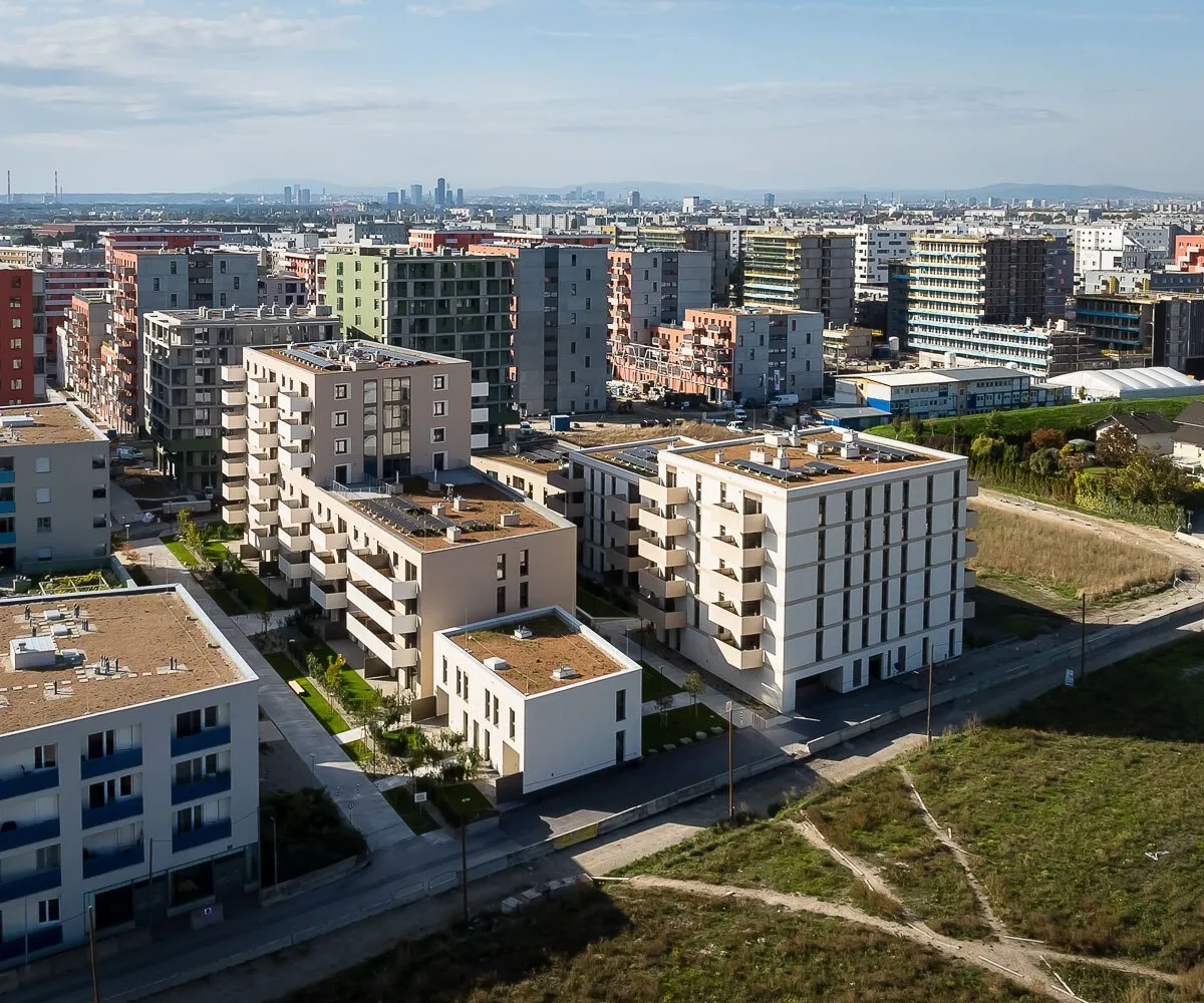In der Donaustadt entsteht ein besonders attraktives Stadtquartier mit Wohnungen, Geschäften, Lokalen, Freiraum und zahlreichen Gemeinschafts- und Mobilitätsangeboten. Auch die Natur kommt nicht zu kurz, denn in unmittelbarer Nähe befindet sich der Badeteich Hirschstetten sowie die gleichnamigen, weitläufigen Blumengärten. Hinsichtlich der öffentlichen Anbindung gibt es zahlreiche Optionen: Die U2 (Haltestelle Hausfeldstraße) erreicht man fußläußig innerhalb von zehn Minuten. Die Haltestelle der Straßenbahn-Linie Prinzgasse ist 350 Meter entfernt; die Buslinien 85A und 95 A (Haltestelle Pirquetgasse) 150 Meter. In 300 bzw. 350 Metern Entfernung befinden sich die Buslinien 95B und 97 A (Haltestelle Zanggasse). Und wer mag, ist innerhalb von 20 Minuten in der Wiener Innenstadt.