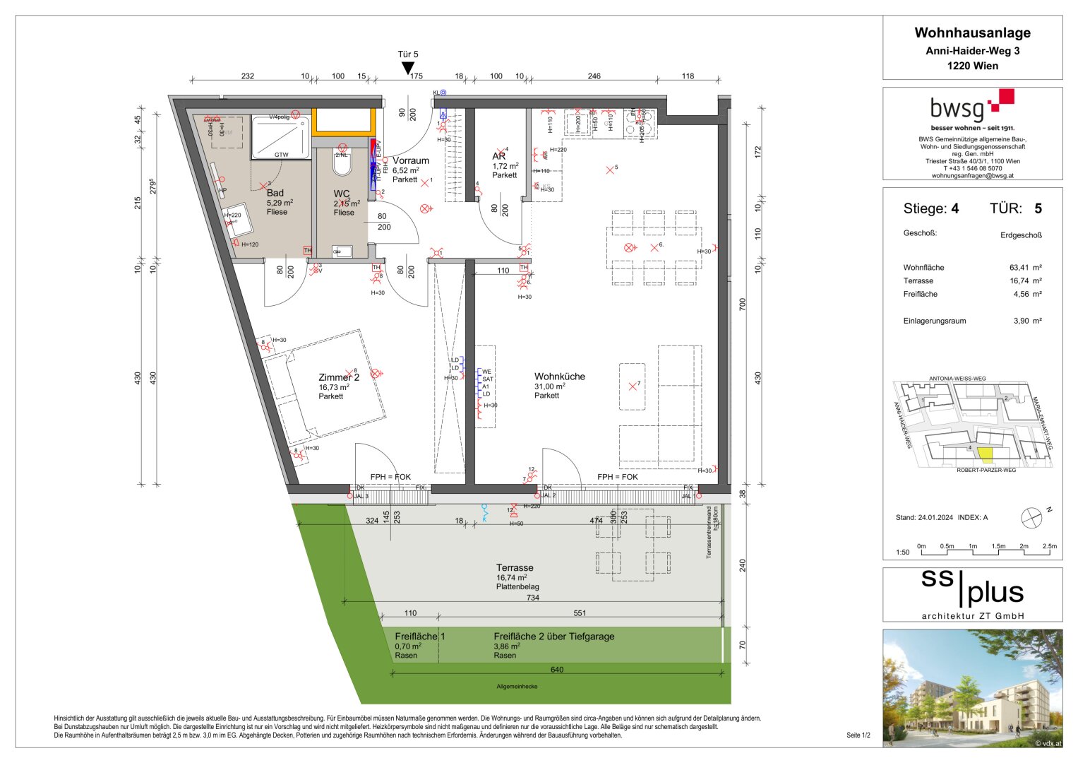 * ) Während der Aktion werden die Verkaufspreise um 6,5 % reduziert. Dies entspricht den durchschnittlichen Nebenkosten beim provisionsfreien Wohnungskauf (1,9 % Vertragserrichtung, 3,5 % Grunderwerbsteuer, 1,1 % Eintragungsgebühr). Die auf Basis des reduzierten Kaufpreises berechneten Nebenkosten sind über den Treuhänder zu begleichen. Eine mögliche Gebührenbefreiung gem. § 25a iVm § 25b Gerichtsgebührengesetz kann zusätzlich in Anspruch genommen werden. Der Einrichtungsgutschein wird bei Wohnungsübergabe übergeben und ist nicht in bar ablösbar.