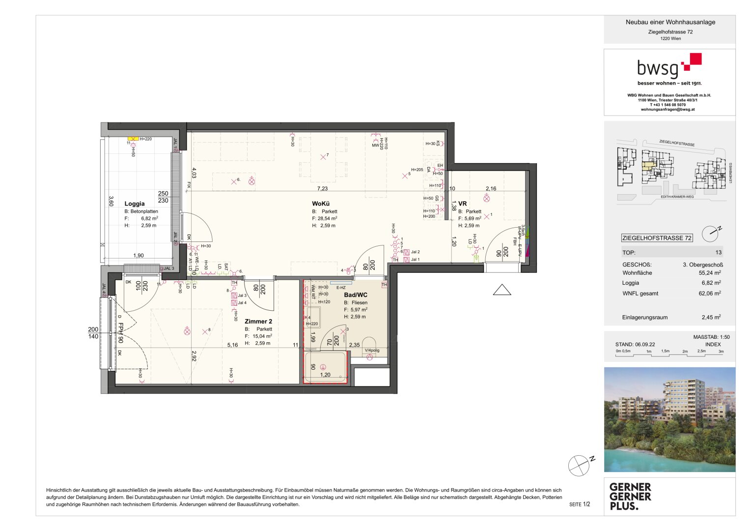 * ) Während der Aktion werden die Verkaufspreise um 6,5 % reduziert. Dies entspricht den durchschnittlichen Nebenkosten beim provisionsfreien Wohnungskauf (1,9 % Vertragserrichtung, 3,5 % Grunderwerbsteuer, 1,1 % Eintragungsgebühr). Die auf Basis des reduzierten Kaufpreises berechneten Nebenkosten sind über den Treuhänder zu begleichen. Eine mögliche Gebührenbefreiung gem. § 25a iVm § 25b Gerichtsgebührengesetz kann zusätzlich in Anspruch genommen werden. Der Einrichtungsgutschein wird bei Wohnungsübergabe übergeben und ist nicht in bar ablösbar.