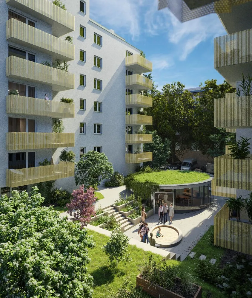 Im 10. Wiener Gemeindebezirk entstehen demnächst 109 geförderte Mietwohnungen auf einer bisher ungenützten innerstädtischen Fläche. Das Projekt bietet großzügige Freiflächen in Form von Balkonen und Terrassen und überzeugt durch seinen privaten, begrünten Innenhof sowie einer üppigen Fassadenbegrünung.