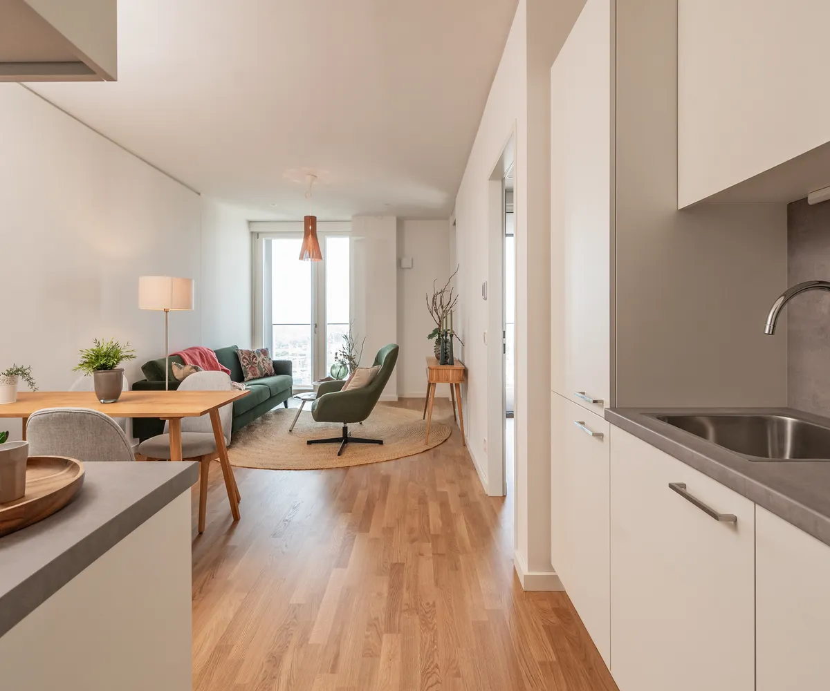 Die Kombination aus moderner Architektur, weiten Glasfronten, hochwertiger Ausstattung und einem nachhaltigen, energieeffizienten Gebäudekonzept schafft ein urbanes Zuhause mit besonderem Wohnkomfort – ideal für Singles, Paare und Familien.