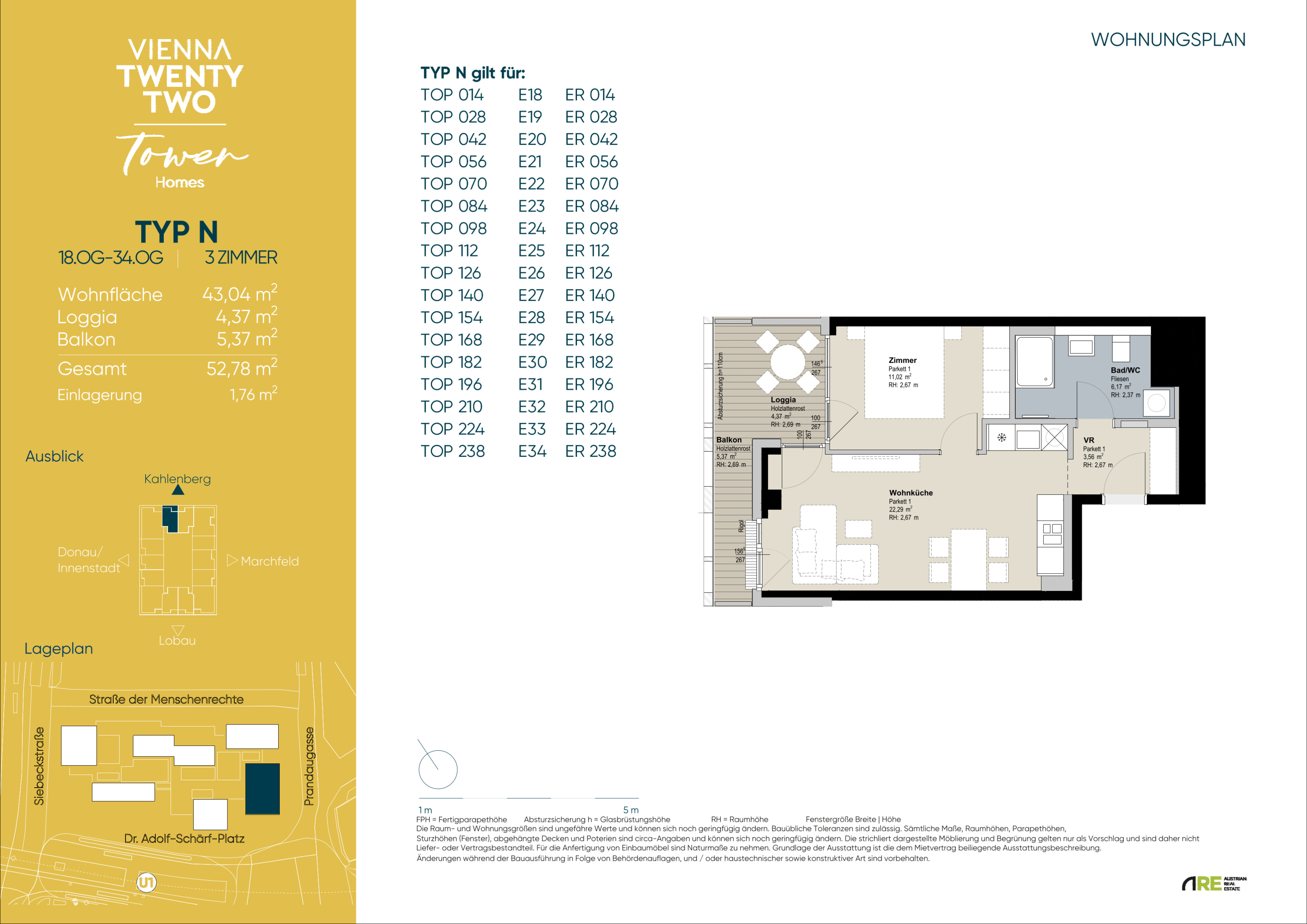 In einzigartiger Lage, direkt bei der U1-Station Kagran und vis-à-vis vom Donau Zentrum, entsteht ein exklusiver, ca. 155m hoher Wohnturm mit 45 Etagen. Die insgesamt 347 Mietwohnungen bieten einen vielfältigen Wohnungsmix: von smart geschnittenen 1,5-Zimmer-Apartments ab ca. 38 m² über komfortable 2-Zimmer-Wohnungen bis hin zu großzügigen 3- und 4-Zimmerwohnungen mit bis zu ca. 80 m².
