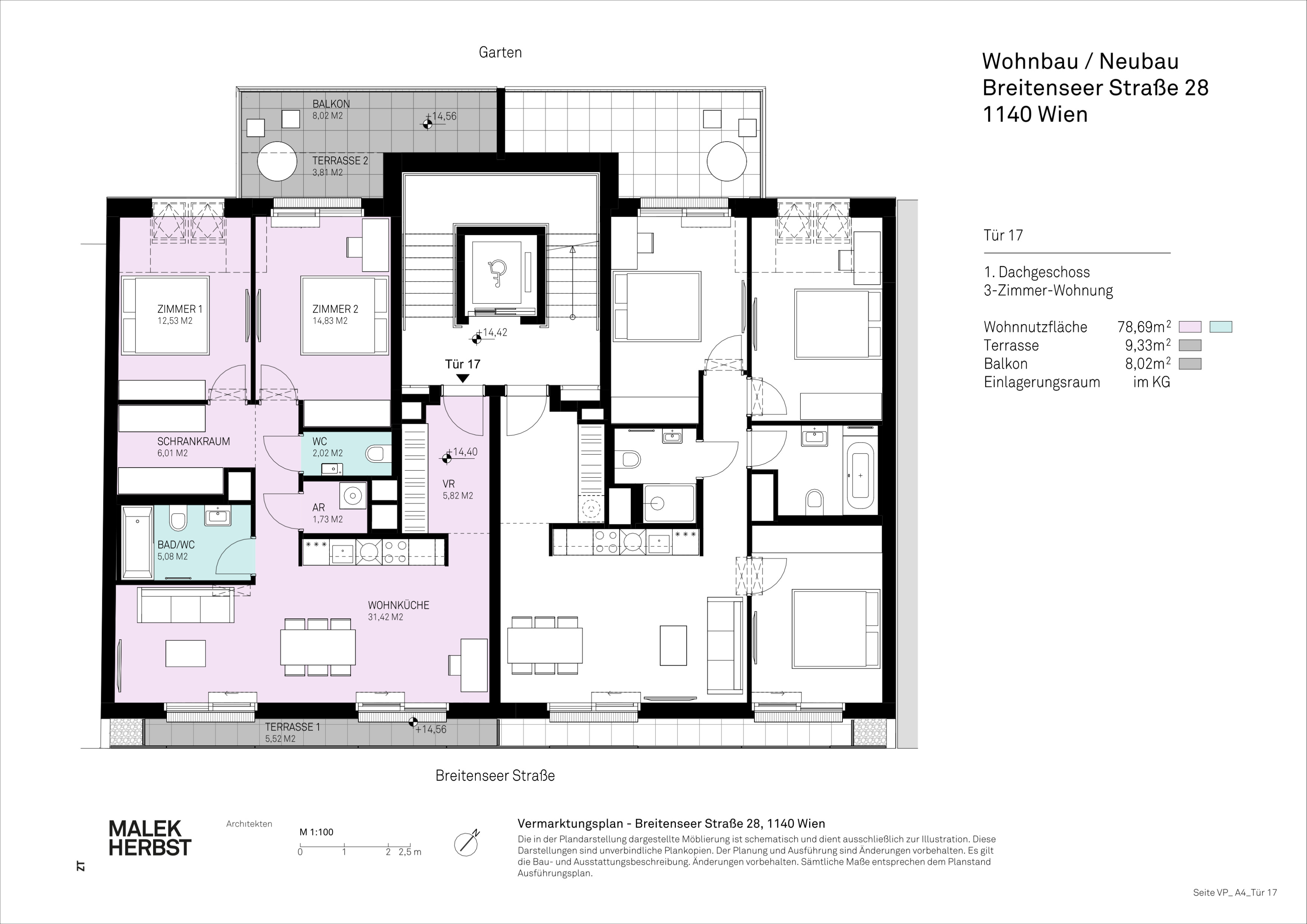 Das Erstbezugsprojekt in der Breitenseer Straße 28 überzeugt durch seine ausgewogene Kombination aus urbaner Lage und angenehmem Wohnkomfort. Inmitten des 14. Bezirks gelegen, profitieren zukünftige Bewohner von einer hervorragenden Nahversorgung: Supermärkte, Bäckereien, Cafés, Apotheken sowie diverse Geschäfte des täglichen Bedarfs befinden sich nur wenige Schritte entfernt. Gleichzeitig lädt die grüne Umgebung mit nahegelegenen Parks zu entspannenden Spaziergängen, sportlichen Aktivitäten und erholsamen Stunden im Freien ein. Die öffentliche Verkehrsanbindung ist ausgezeichnet – die U-Bahnlinie U3, die Straßenbahnlinien 10 und 49 sowie die S-Bahn S45 sorgen für eine rasche Erreichbarkeit der Innenstadt und anderer Stadtteile. Das Neubauprojekt mit 19 modernen Wohnungen verbindet somit ideale Infrastruktur mit einem ruhigen, naturnahen Wohnambiente.