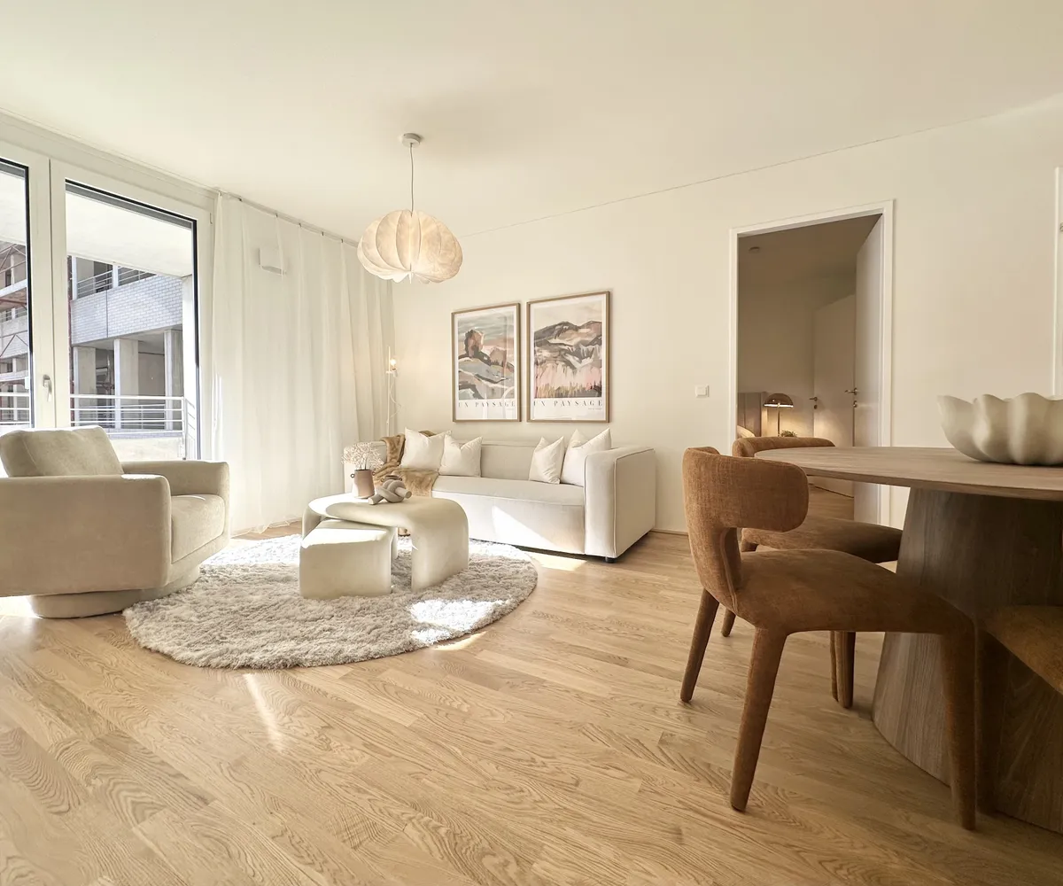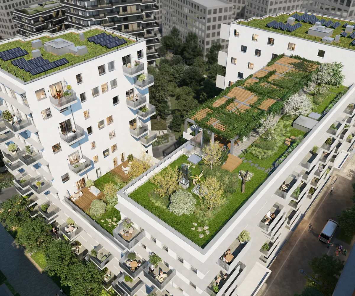 Einladende Sitzbereiche, Pergola-Überdachungen und ein wunderschöner Blick in den Park laden zum Verweilen ein. PARK FLATS vereint urbanes Wohnen und Natur auf ideale Weise – ein Ort, um das Leben in all seinen Facetten zu genießen.