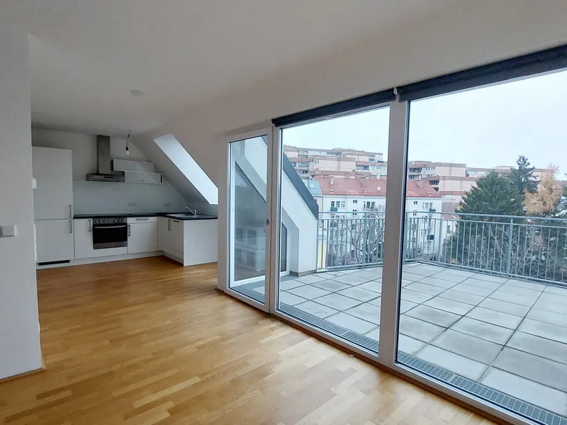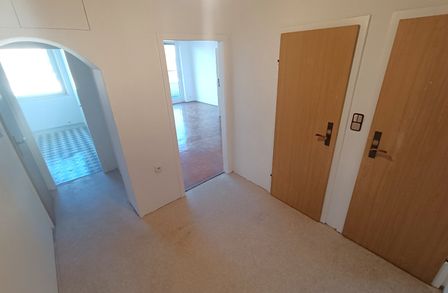 Die Wohnung verfügt über eine Wohnfläche von rund 58,48 m² und die Loggia bietet auf einer Fläche von rund 11,86 m² einen wunderschönen Stadtblick . Als praktische Ergänzung sorgt ein Treppenlift im Stiegenhaus für einen barrierefreien Zugang.