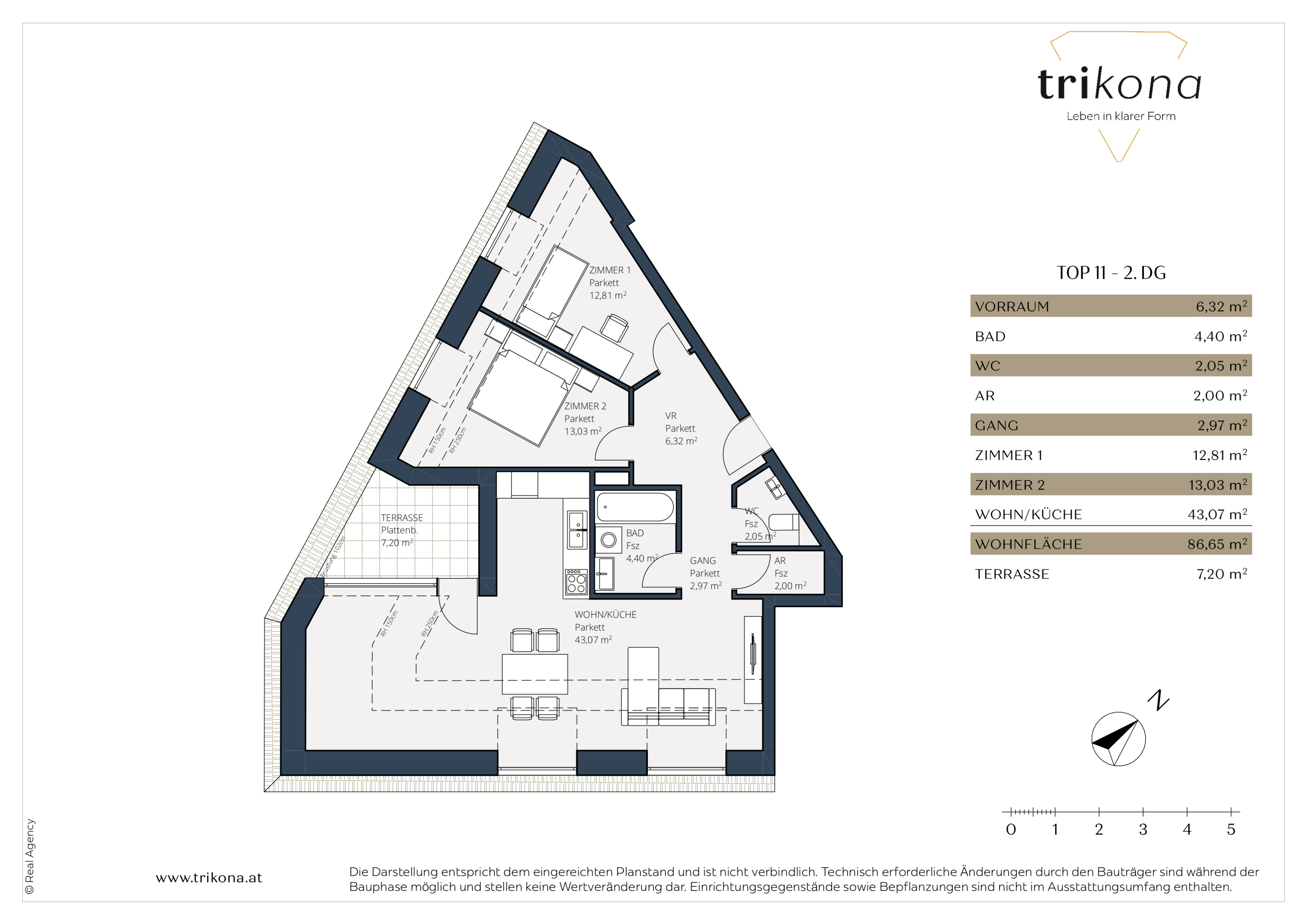 Das besondere Merkmal des Gebäudes ist sein außergewöhnlicher dreieckiger Baukörper. Durch die clevere Nutzung der herausfordernden Grundstücksform wurde eine einzigartige Architektur geschaffen, die sowohl ästhetisch ansprechend als auch funktional ist. Die durchdachte Raumaufteilung innerhalb des dreieckigen Grundrisses sowie die nachhaltige Holz-Hybrid-Bauweise sorgen für eine effiziente Nutzung des Platzes und bieten den Bewohnern ein komfortables, vielseitiges Wohnerlebnis. Jeder Winkel des Gebäudes wurde sorgfältig gestaltet, um maximale Flexibilität und Wohnqualität zu gewährleisten. Mit der K ombination aus Holz & Stahlbeton ist für maximale Stabilität bei gleichzeitig hervorragender Ökobilanz gesorgt. Das a ngenehme, natürliche und gesunde Raumklima mit der hervorragenden Wärmedämmung & Energieeffizienz sorgen dauerhaft für ein gutes Wohngefühl. Mit nur 12 Wohnungen bietet dieses Projekt ein Leben mit Privatsphäre und Ruhe.