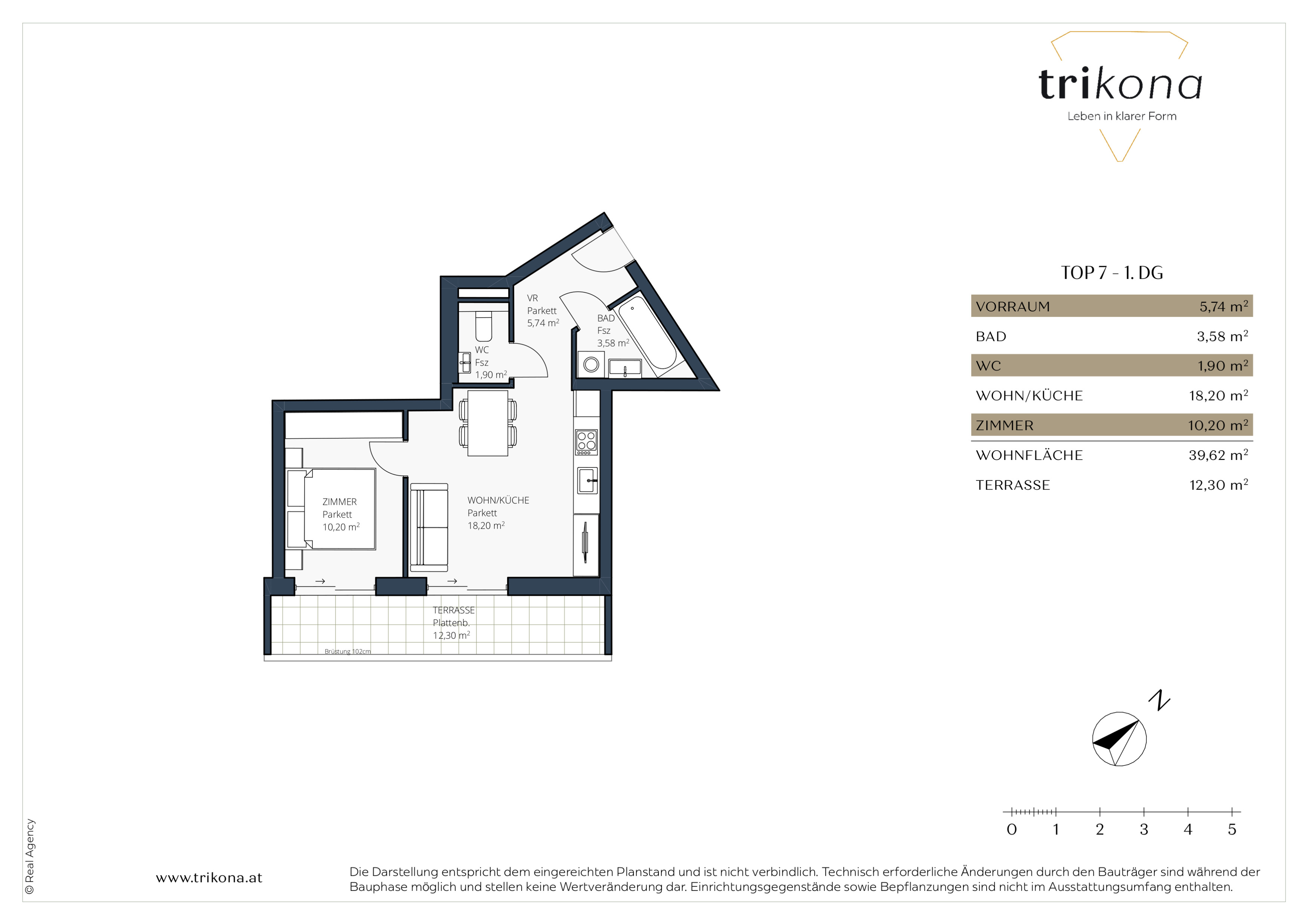 Das besondere Merkmal des Gebäudes ist sein außergewöhnlicher dreieckiger Baukörper. Durch die clevere Nutzung der herausfordernden Grundstücksform wurde eine einzigartige Architektur geschaffen, die sowohl ästhetisch ansprechend als auch funktional ist. Die durchdachte Raumaufteilung innerhalb des dreieckigen Grundrisses sowie die nachhaltige Holz-Hybrid-Bauweise sorgen für eine effiziente Nutzung des Platzes und bieten den Bewohnern ein komfortables, vielseitiges Wohnerlebnis. Jeder Winkel des Gebäudes wurde sorgfältig gestaltet, um maximale Flexibilität und Wohnqualität zu gewährleisten. Mit der K ombination aus Holz & Stahlbeton ist für maximale Stabilität bei gleichzeitig hervorragender Ökobilanz gesorgt. Das a ngenehme, natürliche und gesunde Raumklima mit der hervorragenden Wärmedämmung & Energieeffizienz sorgen dauerhaft für ein gutes Wohngefühl. Mit nur 12 Wohnungen bietet dieses Projekt ein Leben mit Privatsphäre und Ruhe.
