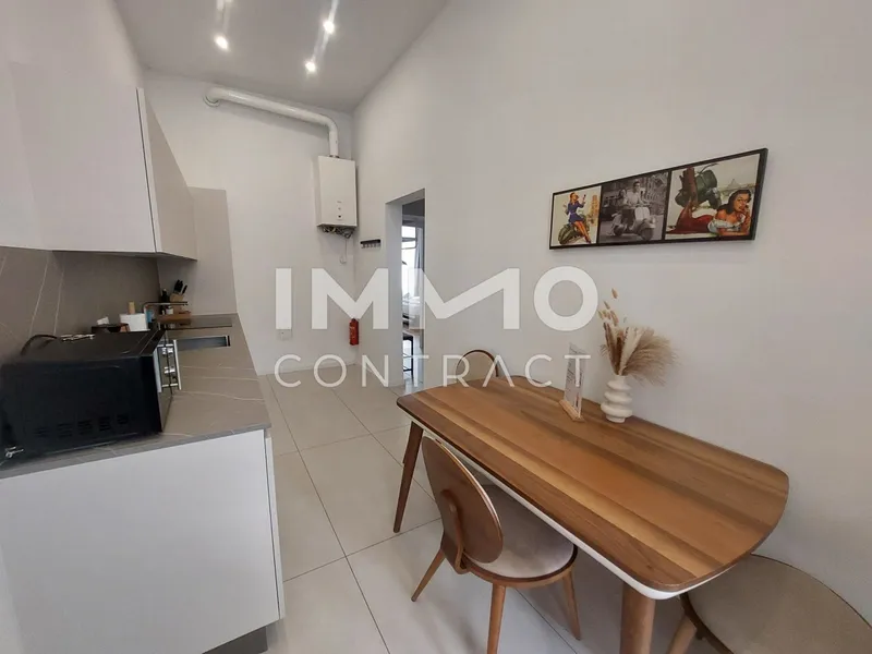 Die Ausstattung umfasst moderne Fliesen und Parkett , eine praktische Pantryküche (Miniküche oder Schrankküche), eine Dusche und eine Toilette . Die Gasversorgung sorgt für ein angenehmes Raumklima.