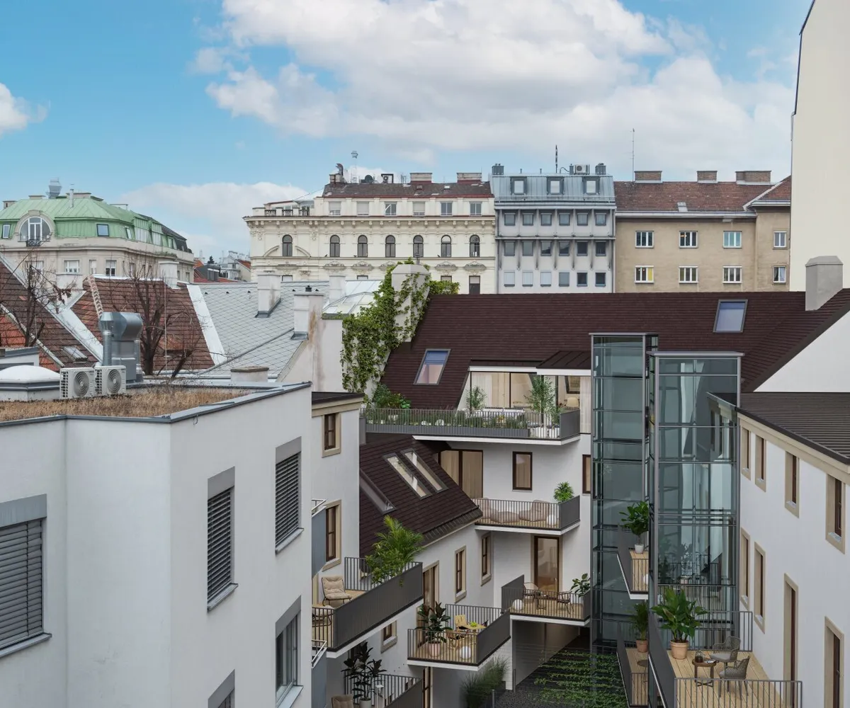 Zusätzlich wird der Innenhof auf Kosten des Eigentümers attraktiv aufgewertet. Die finalen Details dazu werden aktuell noch abgestimmt. Sämtliche genannten Maßnahmen – Balkone, Fenster und Türen – werden innerhalb von sechs Monaten ab dem ersten Kaufvertragsabschluss umgesetzt. Die Kosten dafür sind bereits vollständig in den Kaufpreisen berücksichtigt.