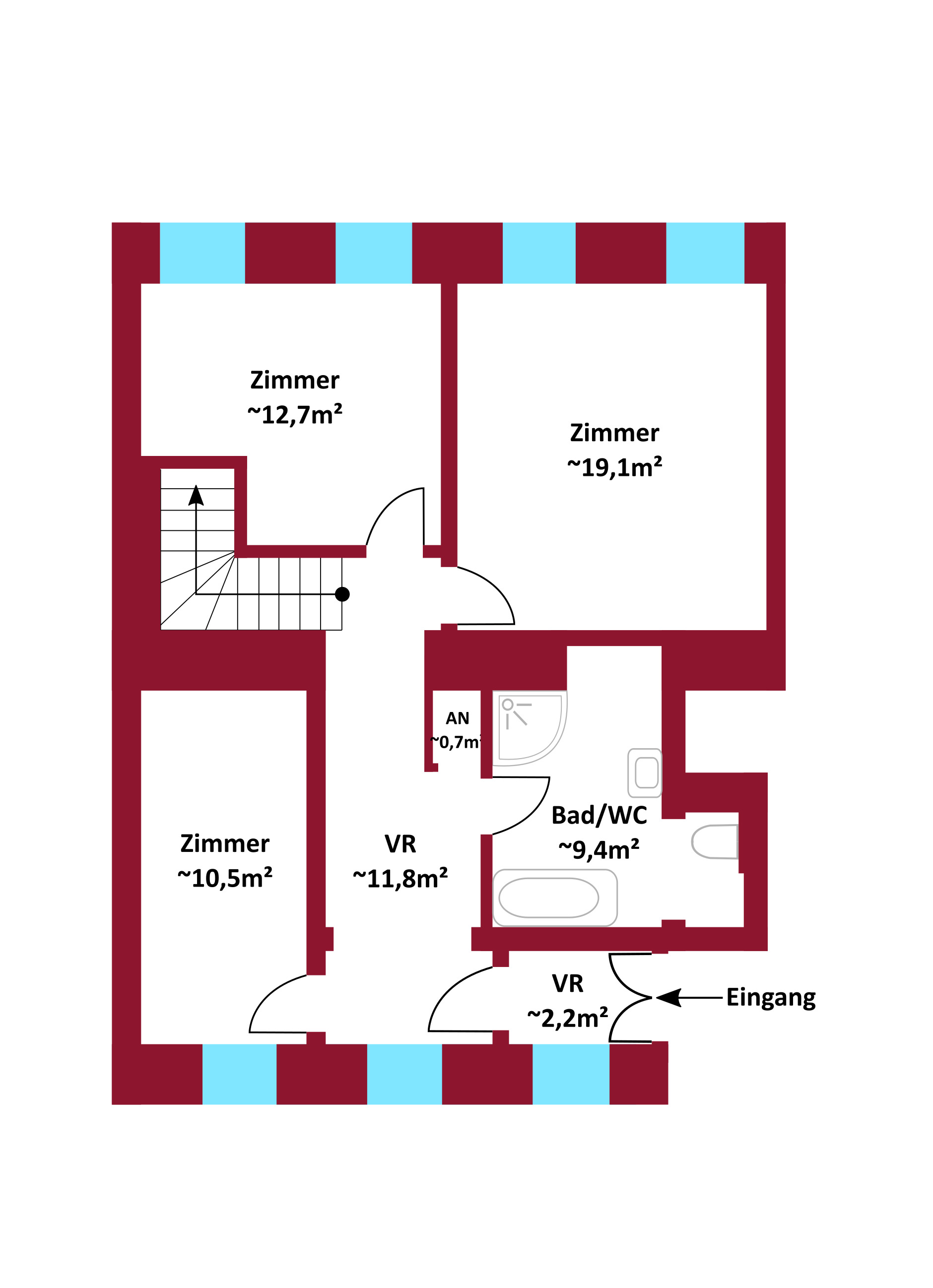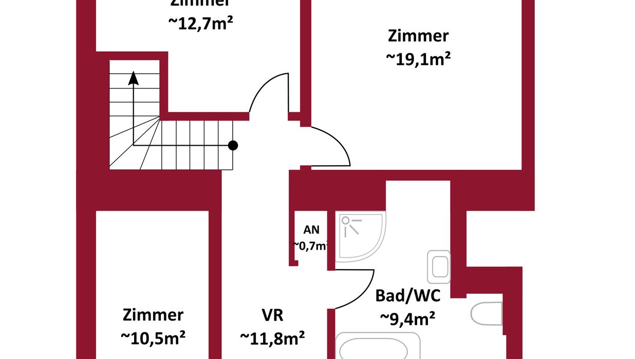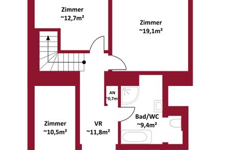 Die Wohnfläche von ca. 114m² erstreckt sich über die folgende Raumaufteilung: